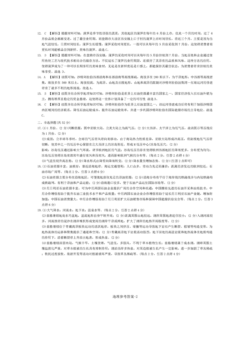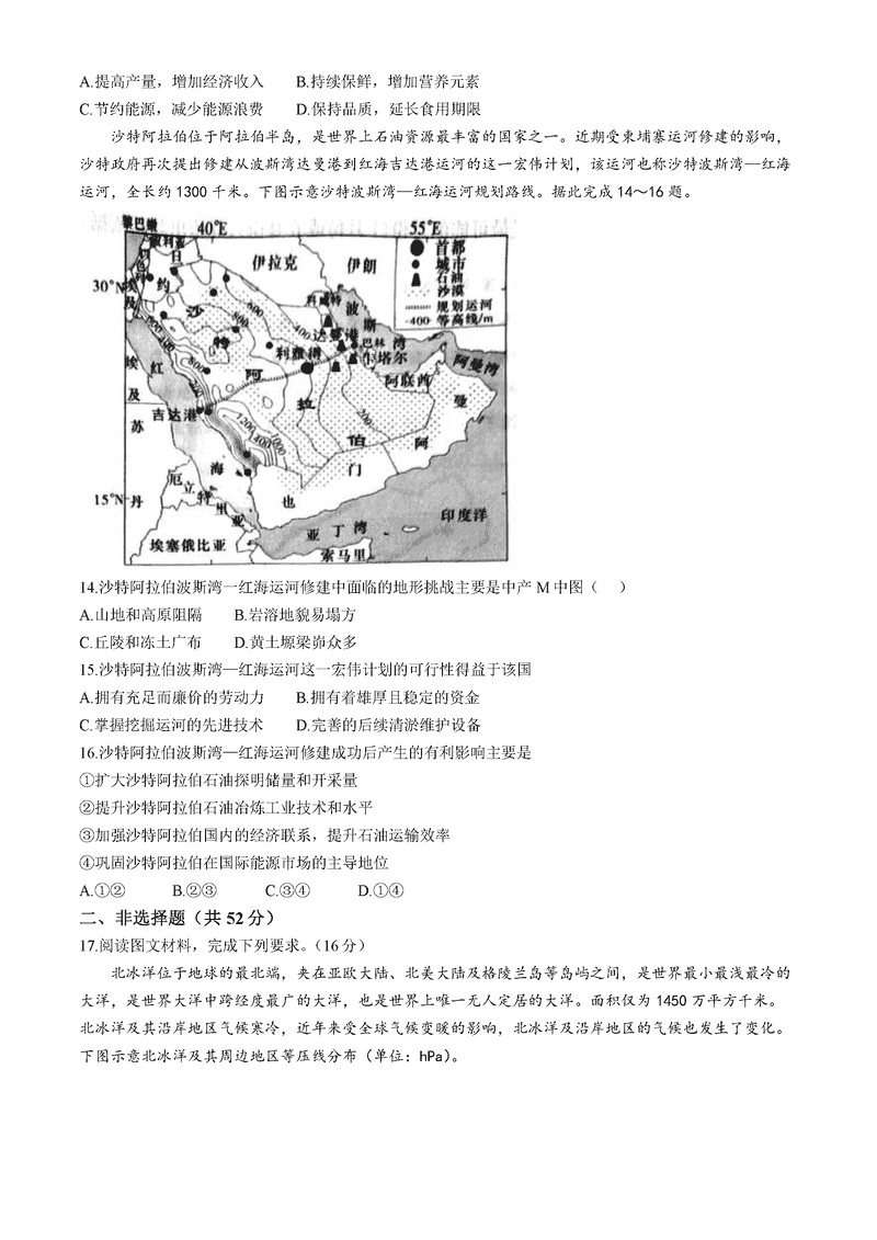 湖南名校联考联合体2025届高三第四次联考地理试题及答案