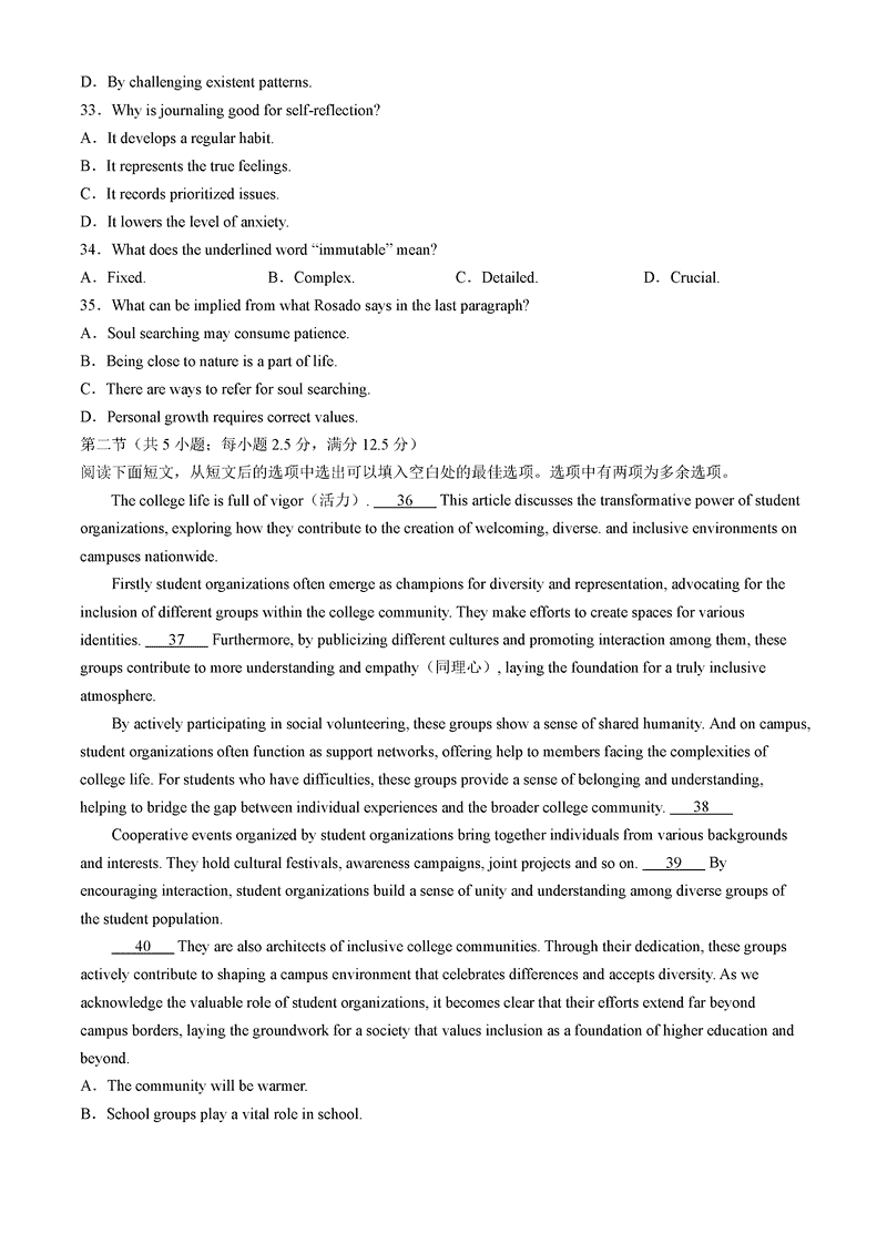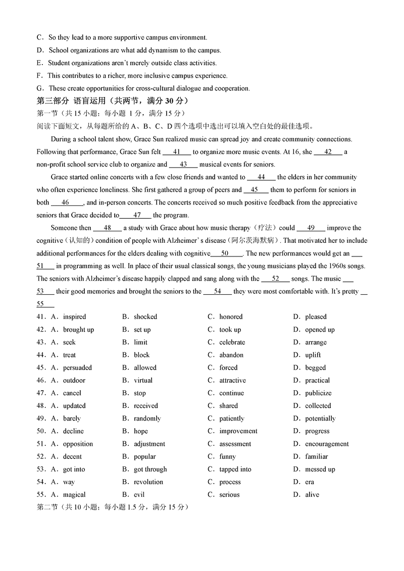 湖南名校联考联合体2025届高三第四次联考英语试题及答案