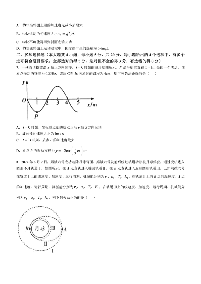 湖南名校联考联合体2025届高三第四次联考物理试题及答案