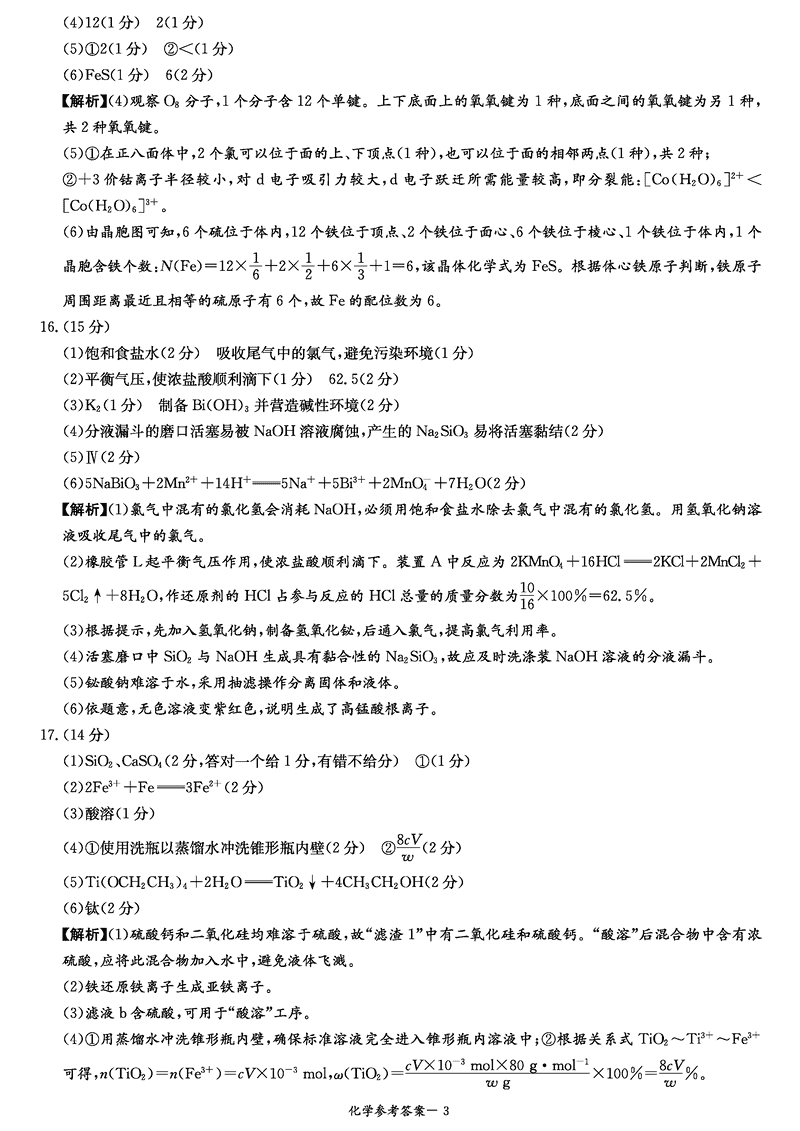 化学试题及答案解析