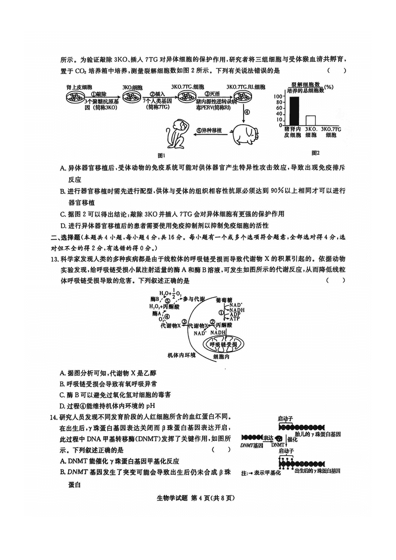 湖南名校联考联合体2025届高三第四次联考生物试题及答案