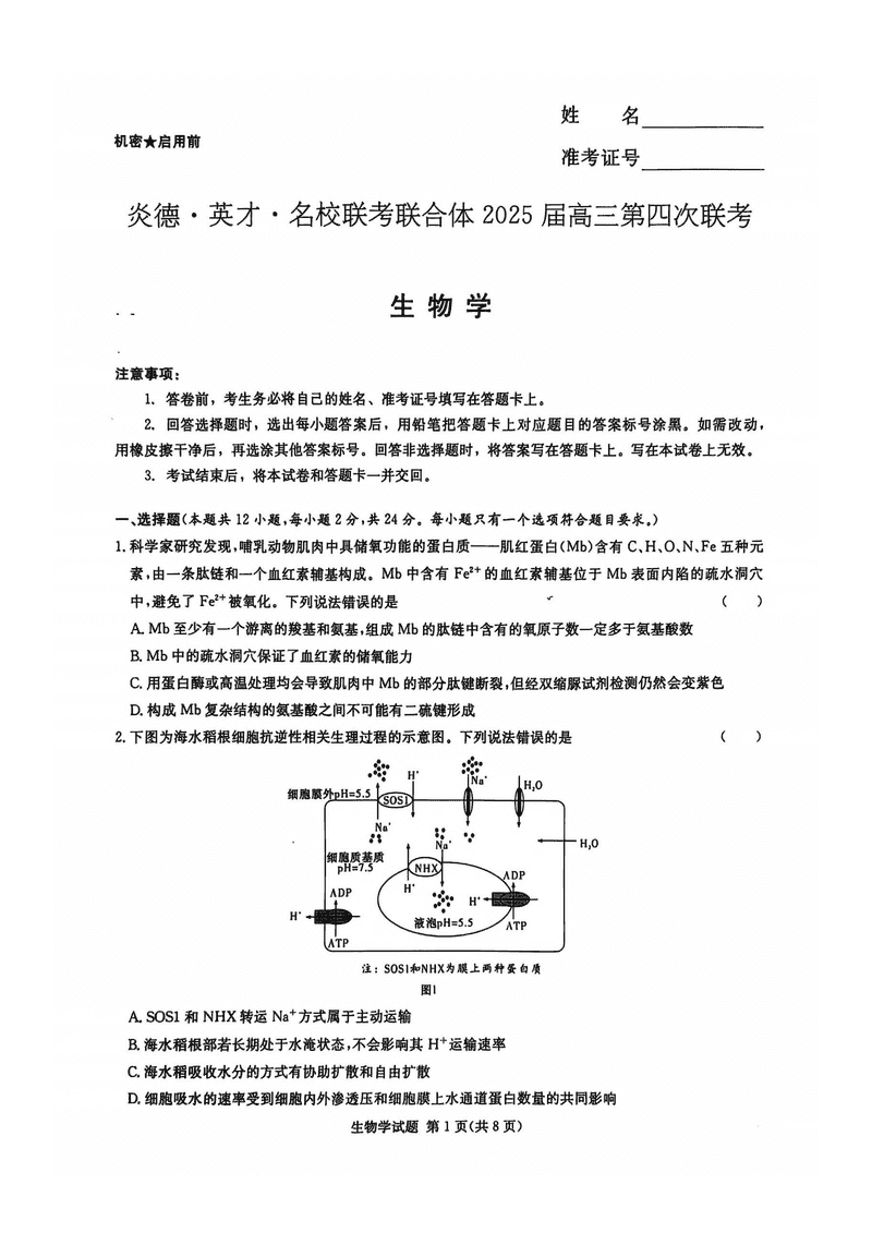 湖南名校联考联合体2025届高三第四次联考生物考试已于近日开考,为方便考生考后及时查看考试情况,查漏补缺、弥补不足,本文整理了试题答案解析相关信息!