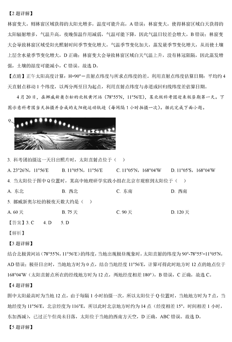 地理试题及答案解析