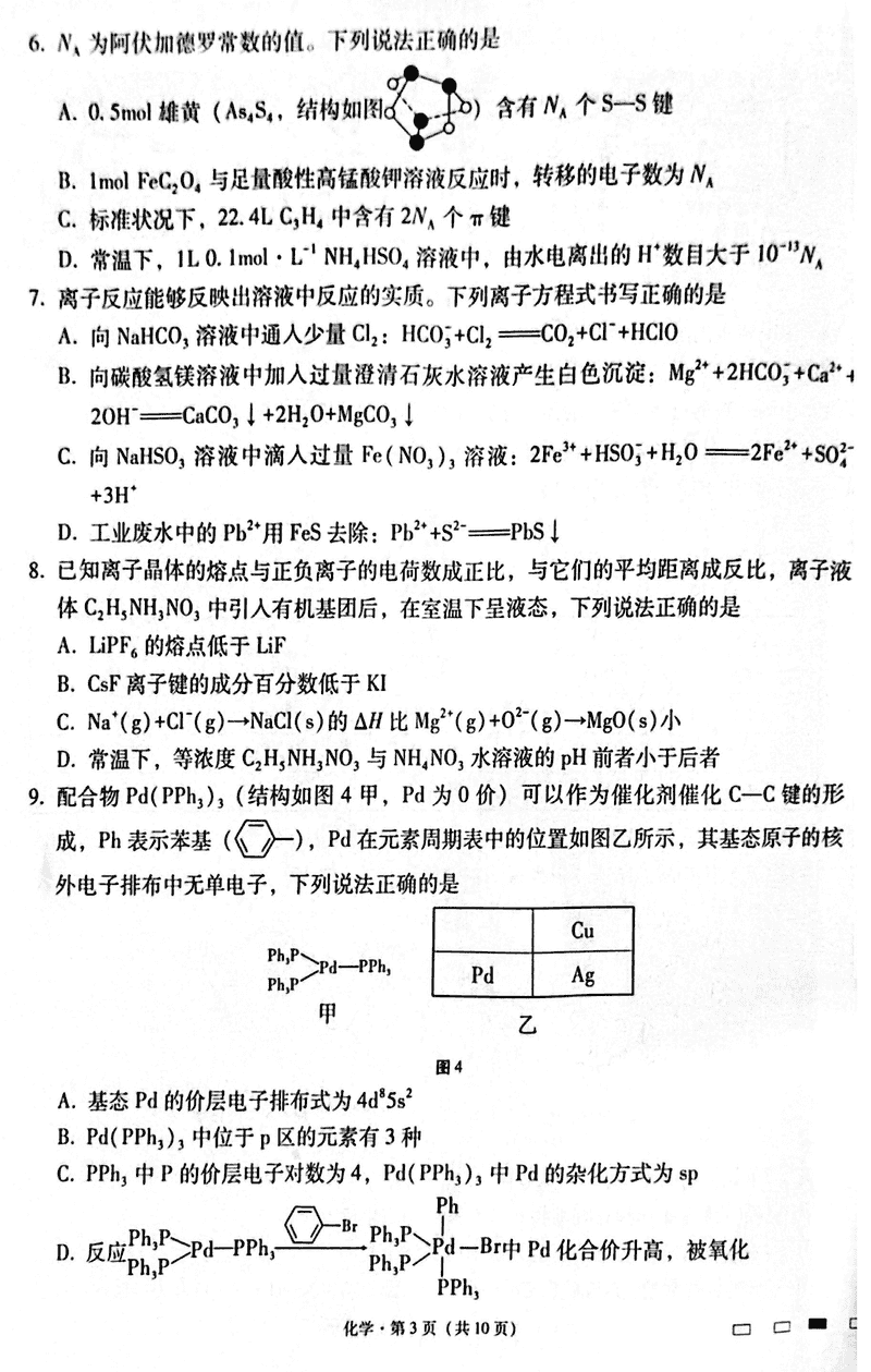 云师大附中2024-2025学年高三高考适应性月考(六)化学试题及答案