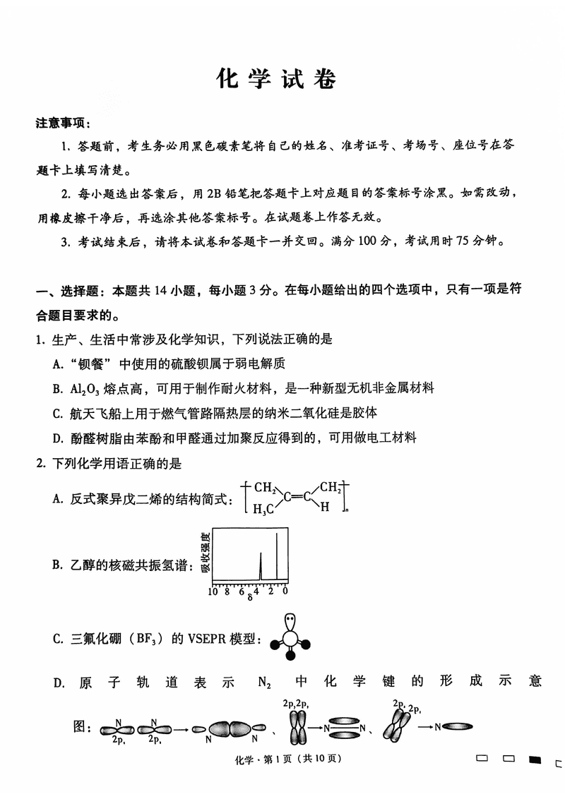 云师大附中2024-2025学年高三高考适应性月考(六)化学考试已于近日开考,为方便考生考后及时查看考试情况,查漏补缺、弥补不足,本文整理了试题答案解析相关信息!