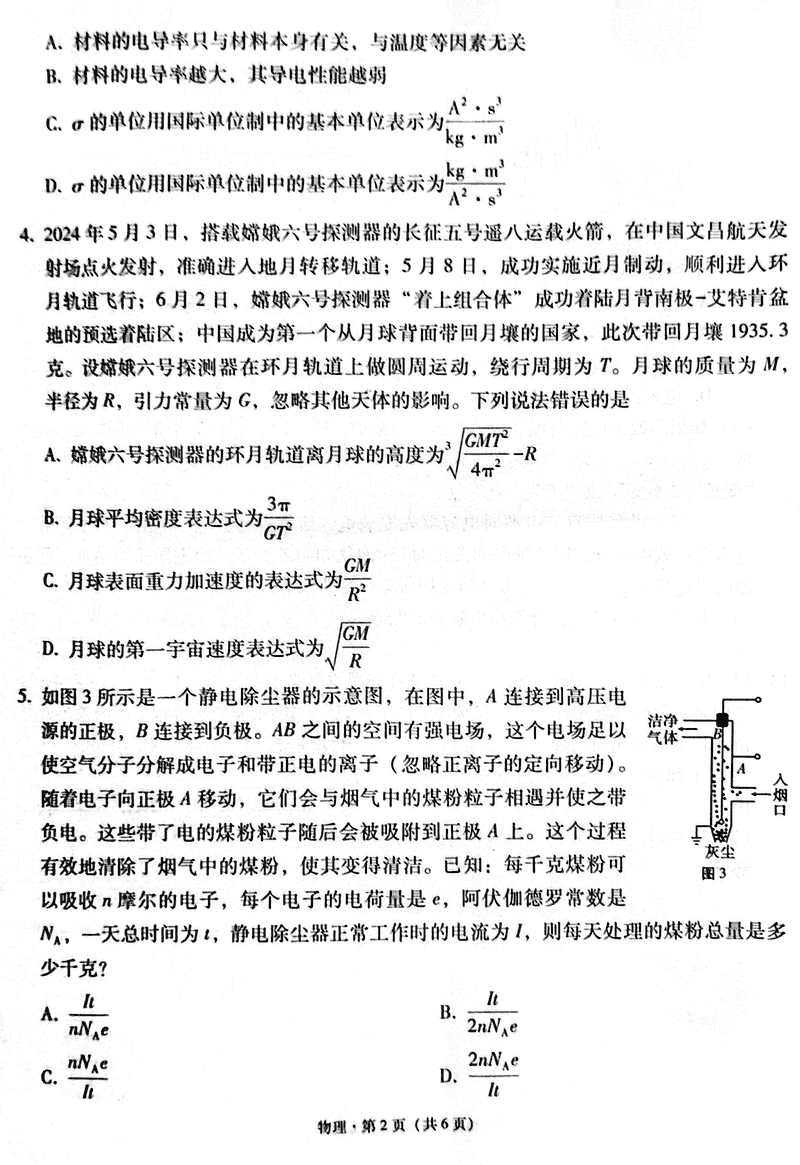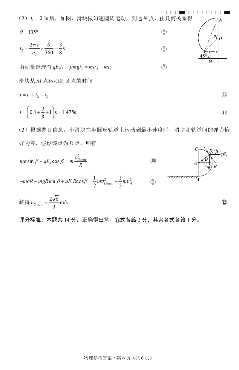 云师大附中2024-2025学年高三高考适应性月考(六)物理试题及答案
