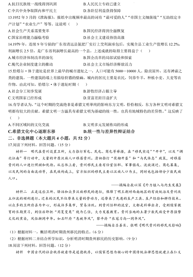 六盘水2025届高三上学期第二次诊断历史考试已于近日开考,为方便考生考后及时查看考试情况,查漏补缺、弥补不足,本文整理了试题答案解析相关信息!