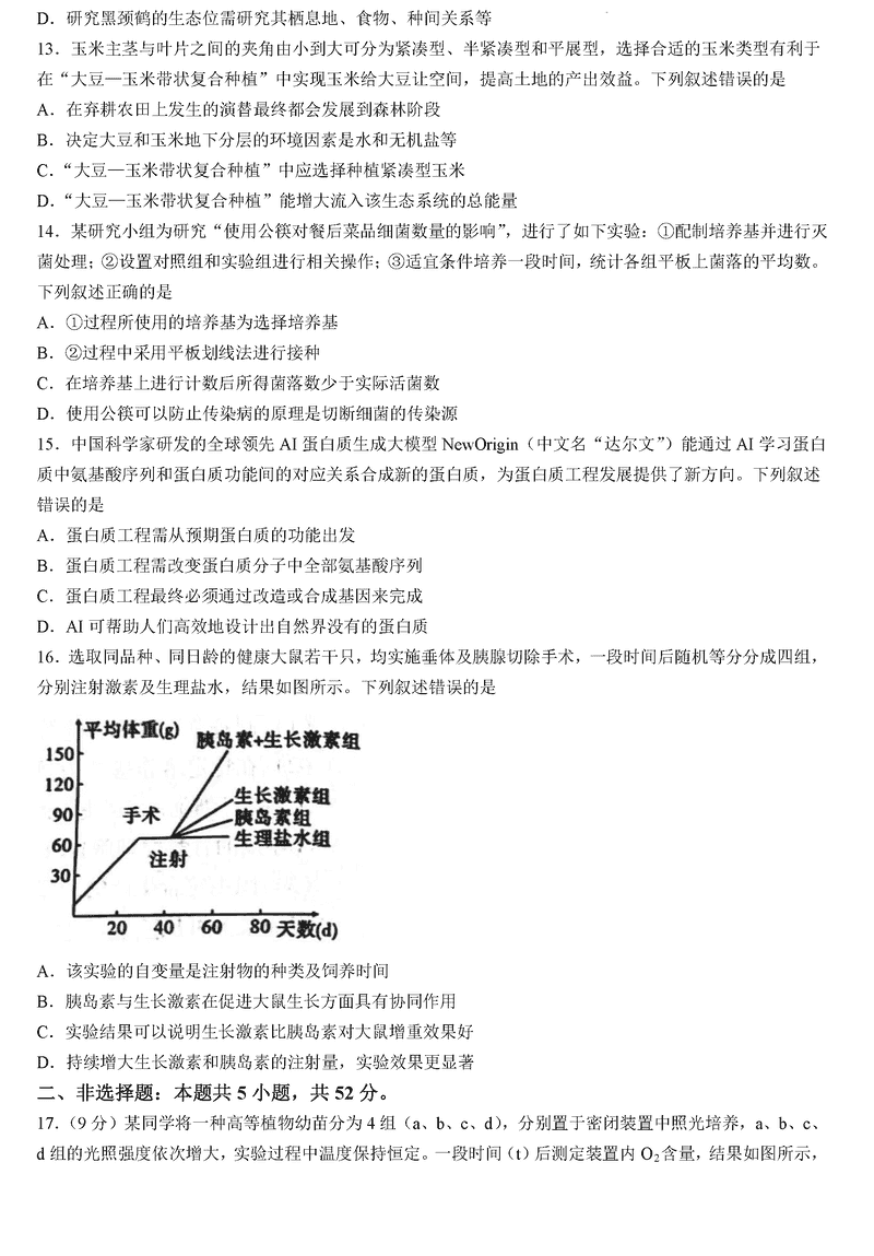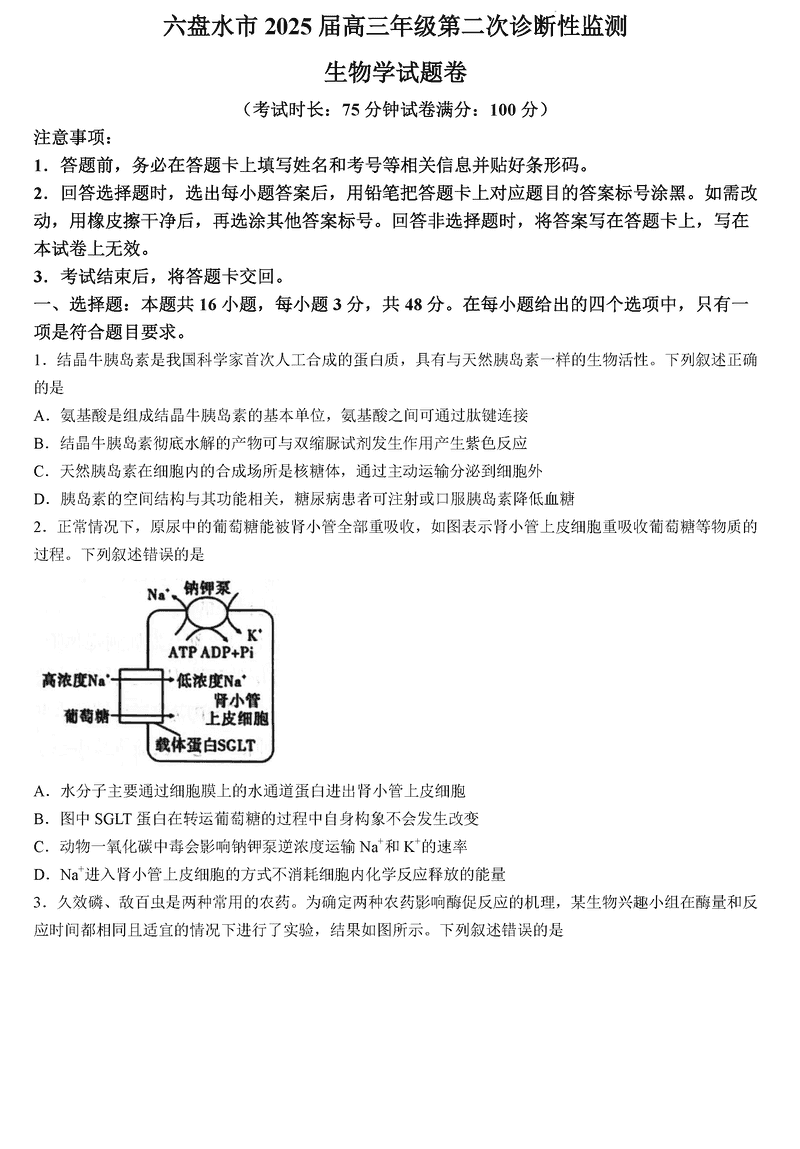 六盘水2025届高三上学期第二次诊断生物试题及答案