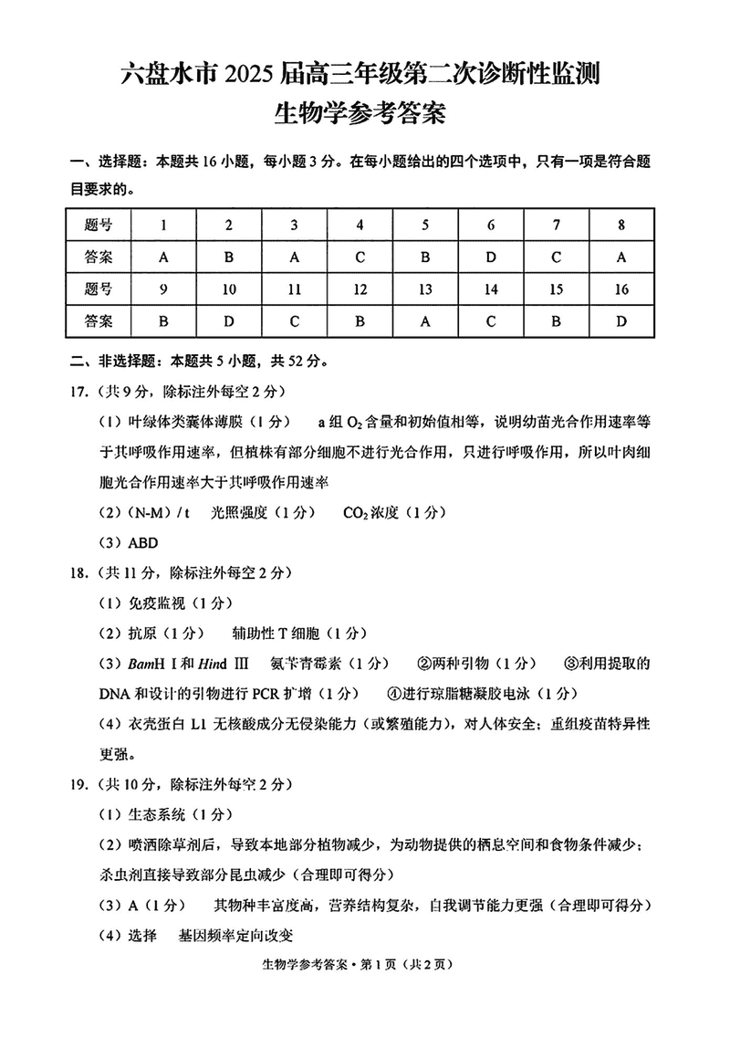 六盘水2025届高三上学期第二次诊断生物考试已于近日开考,为方便考生考后及时查看考试情况,查漏补缺、弥补不足,本文整理了试题答案解析相关信息!