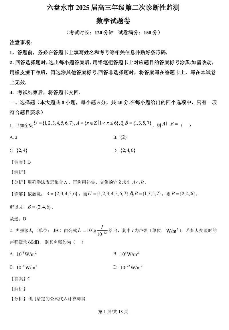 六盘水2025届高三上学期第二次诊断数学考试已于近日开考,为方便考生考后及时查看考试情况,查漏补缺、弥补不足,本文整理了试题答案解析相关信息!