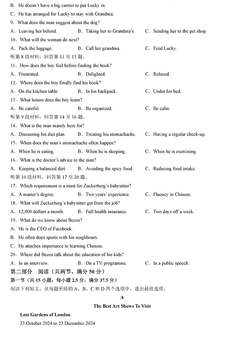 六盘水2025届高三上学期第二次诊断英语考试已于近日开考,为方便考生考后及时查看考试情况,查漏补缺、弥补不足,本文整理了试题答案解析相关信息!
