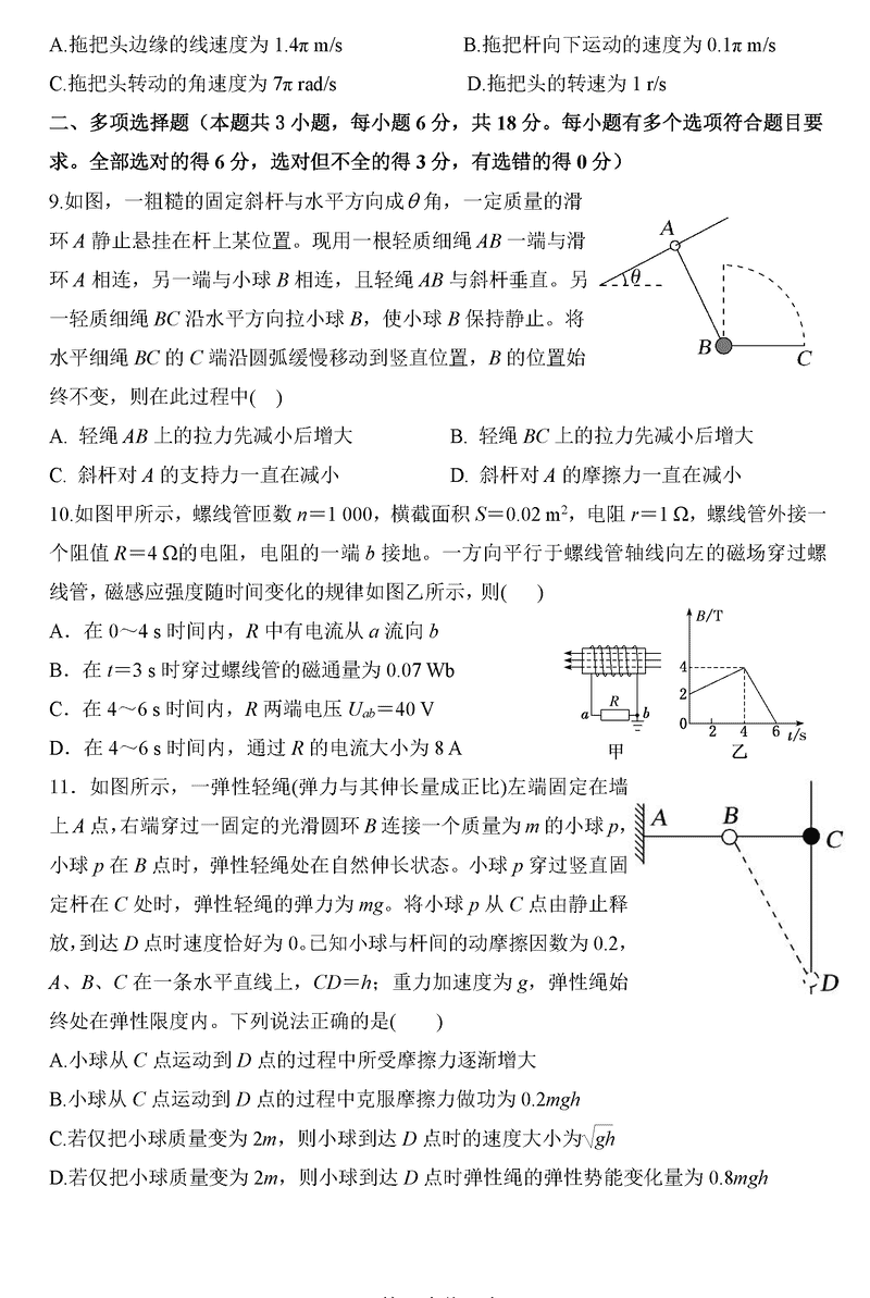 陕西宝鸡中学2025届高三12月月考三物理试题及答案