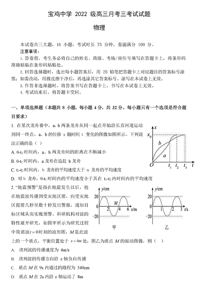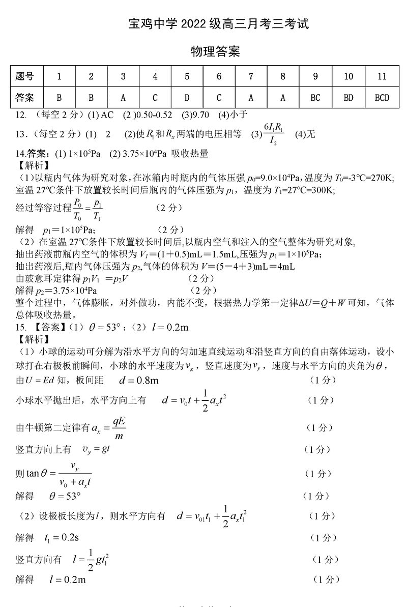 陕西宝鸡中学2025届高三12月月考三物理考试已于近日开考,为方便考生考后及时查看考试情况,查漏补缺、弥补不足,本文整理了试题答案解析相关信息!