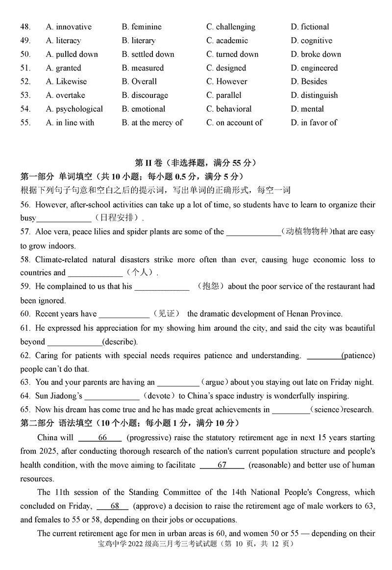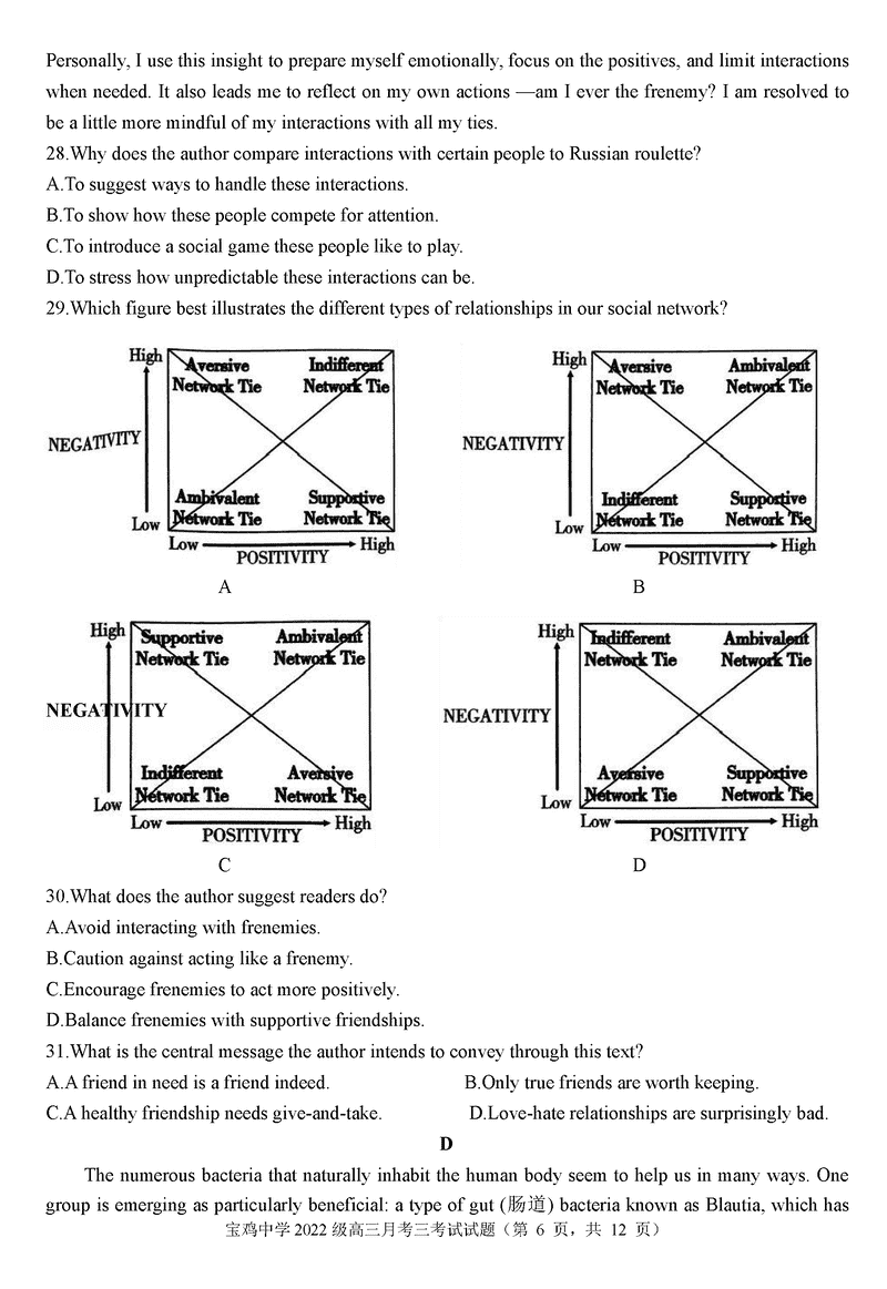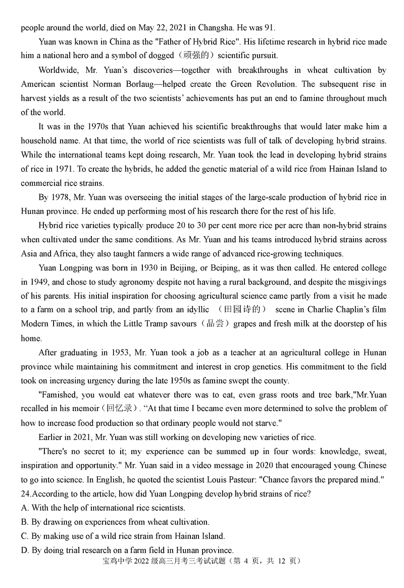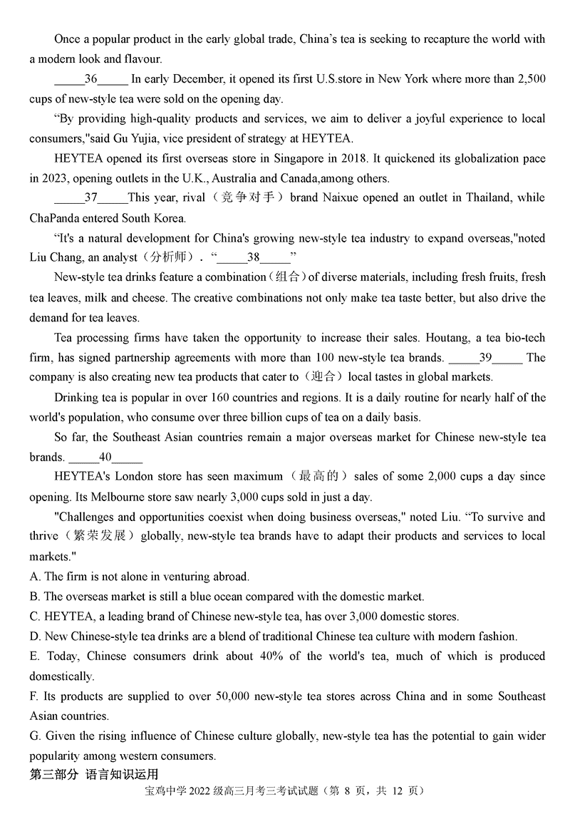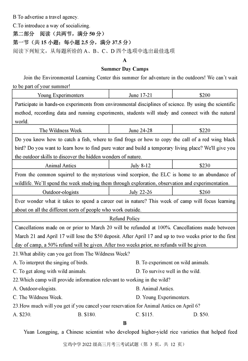 陕西宝鸡中学2025届高三12月月考三英语考试已于近日开考,为方便考生考后及时查看考试情况,查漏补缺、弥补不足,本文整理了试题答案解析相关信息!
