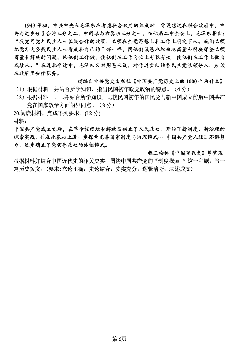 陕西宝鸡中学2025届高三12月月考三历史试题及答案