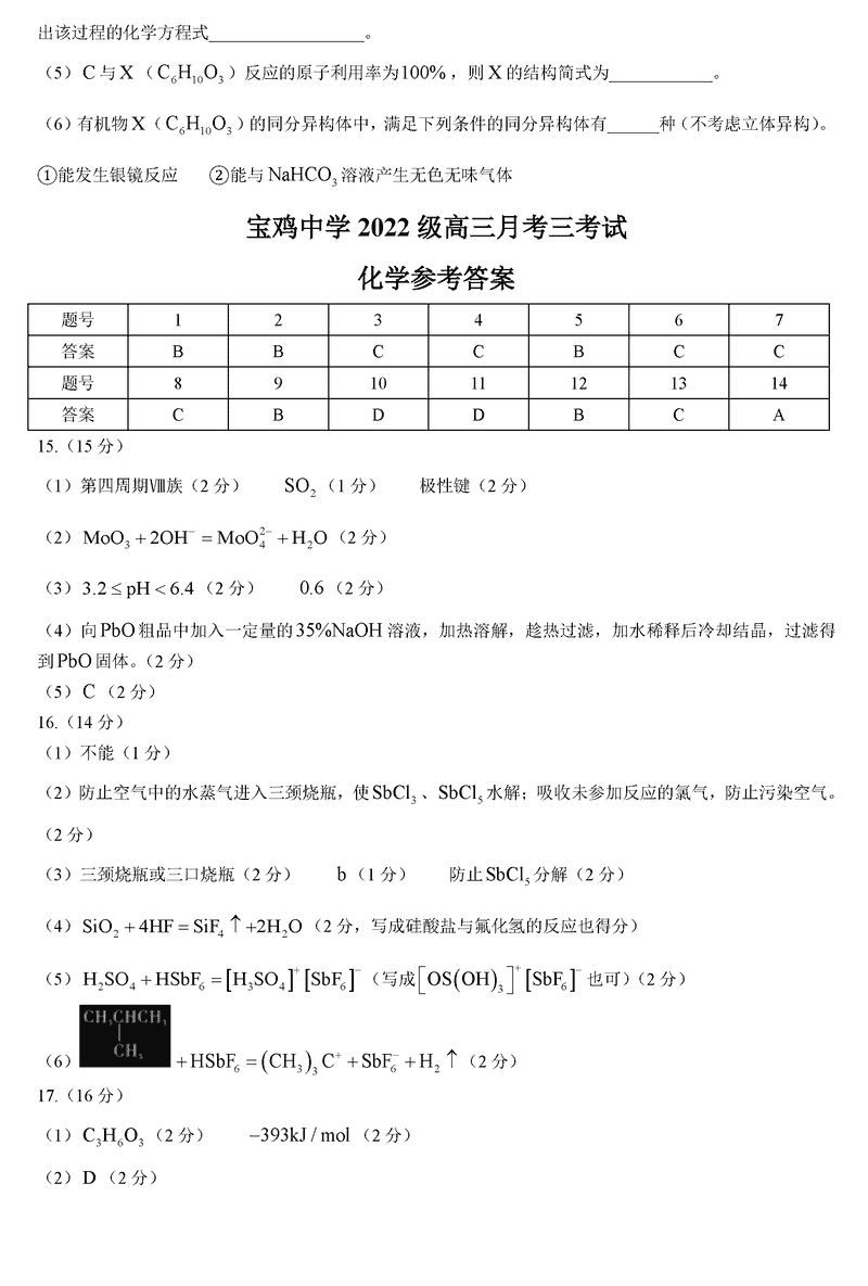 陕西宝鸡中学2025届高三12月月考三化学考试已于近日开考,为方便考生考后及时查看考试情况,查漏补缺、弥补不足,本文整理了试题答案解析相关信息!