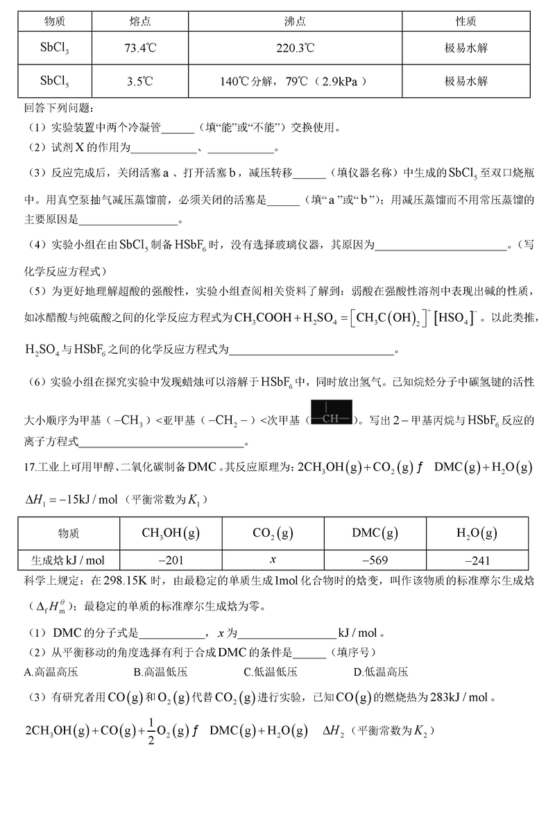 化学试题及答案解析