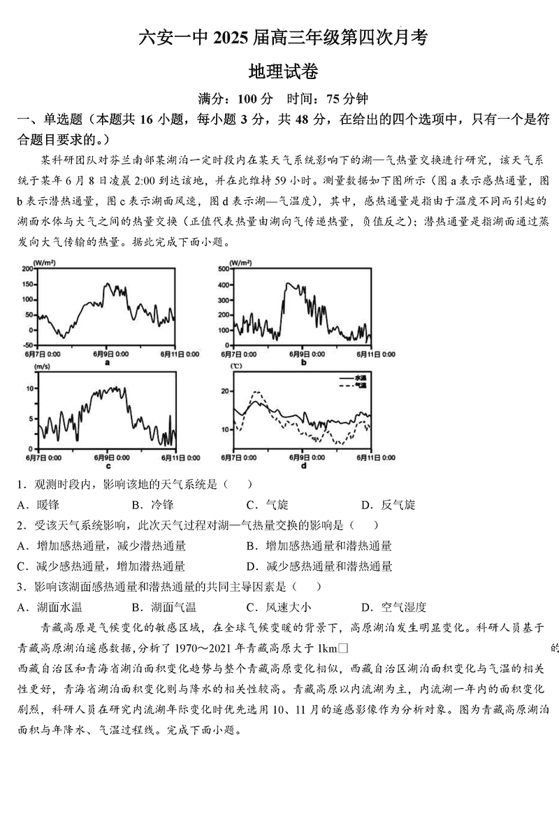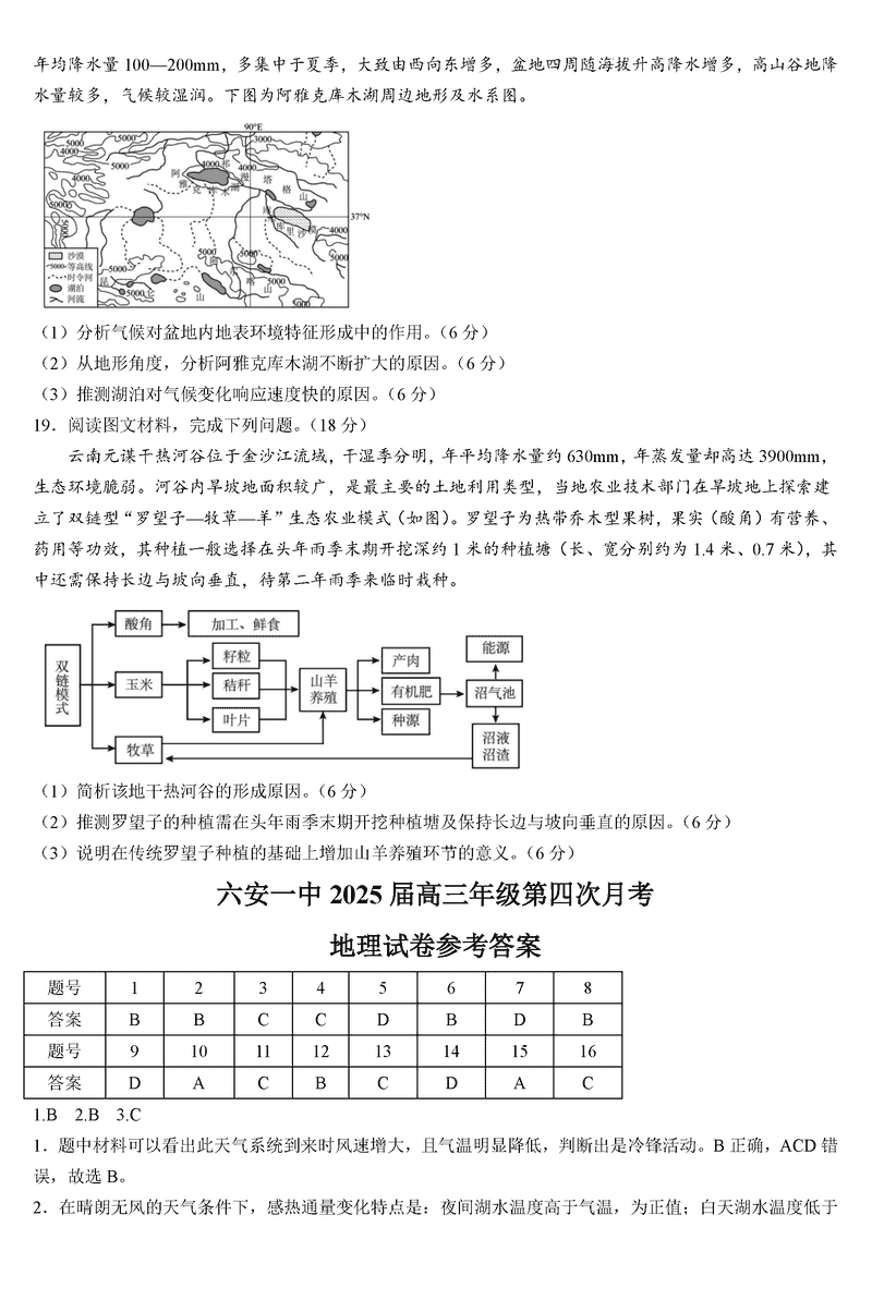 六安一中2025届高三第四次月考地理考试已于近日开考,为方便考生考后及时查看考试情况,查漏补缺、弥补不足,本文整理了试题答案解析相关信息!