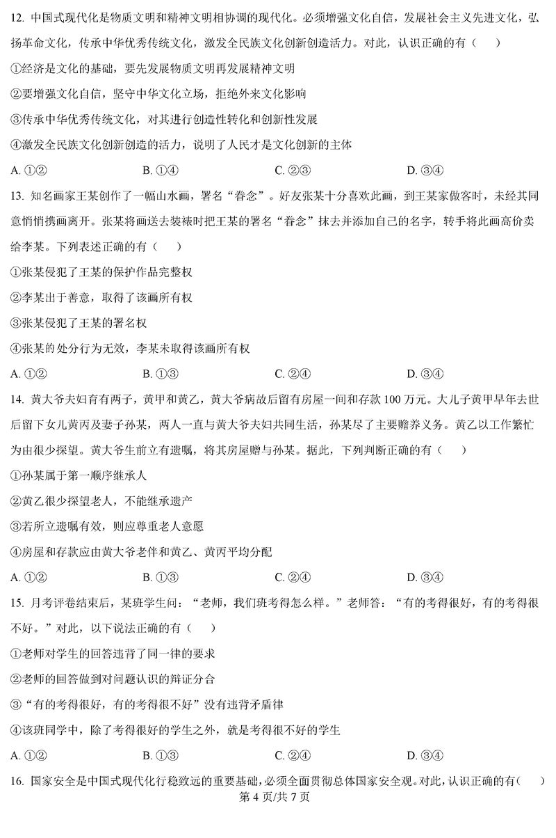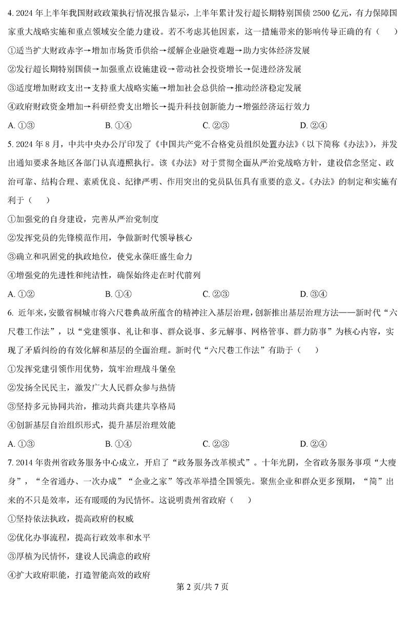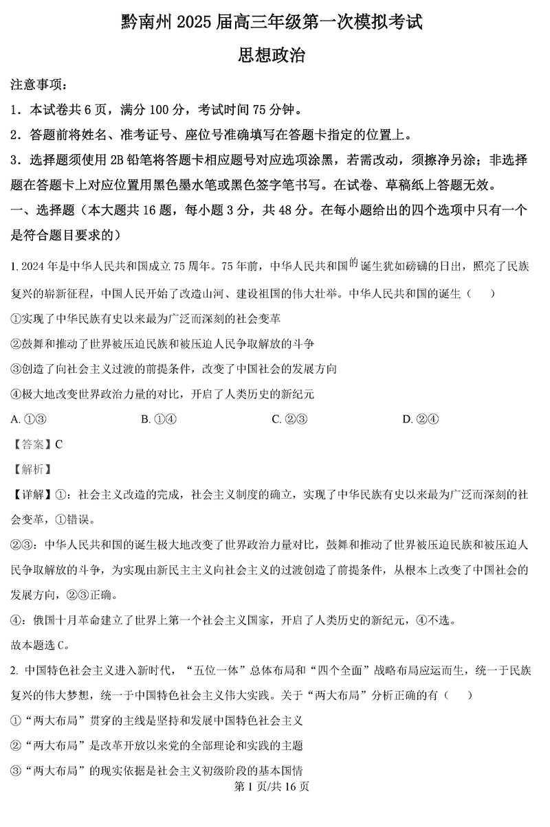 贵州黔南州025届高三第一次模考政治试题及答案 时间:2024-12-04 21:53 贵州 文综试题 贵州黔南州025届高三第一次模考政治考试已于近日开考,为方便考生考后及时查看考试情况,查漏补缺、弥补不足,本文整理了试题答案解析相关信息! 汇总:贵州黔南025届高三第一次模考试题及答案汇总 政治试题及答案解析