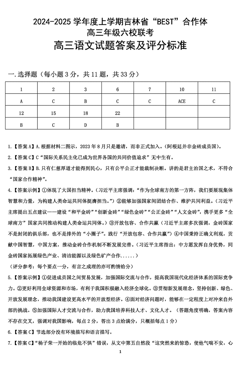 吉林BEST合作体六校2025届高三上学期第三次联考语文考试已于近日开考,为方便考生考后及时查看考试情况,查漏补缺、弥补不足,本文整理了试题答案解析相关信息!
