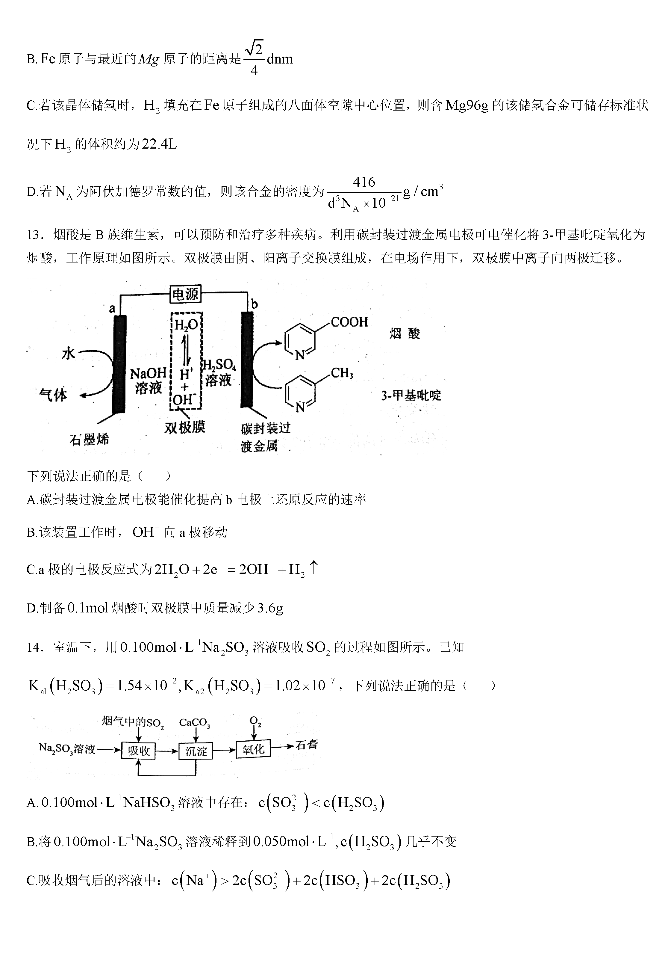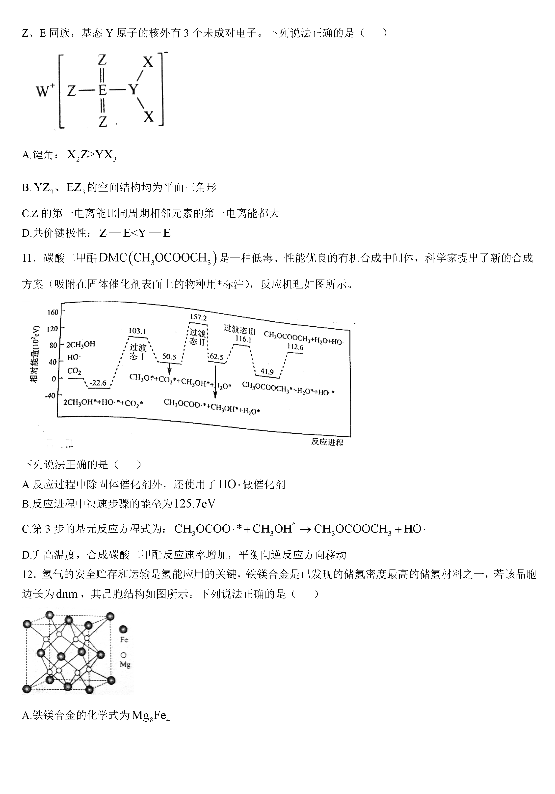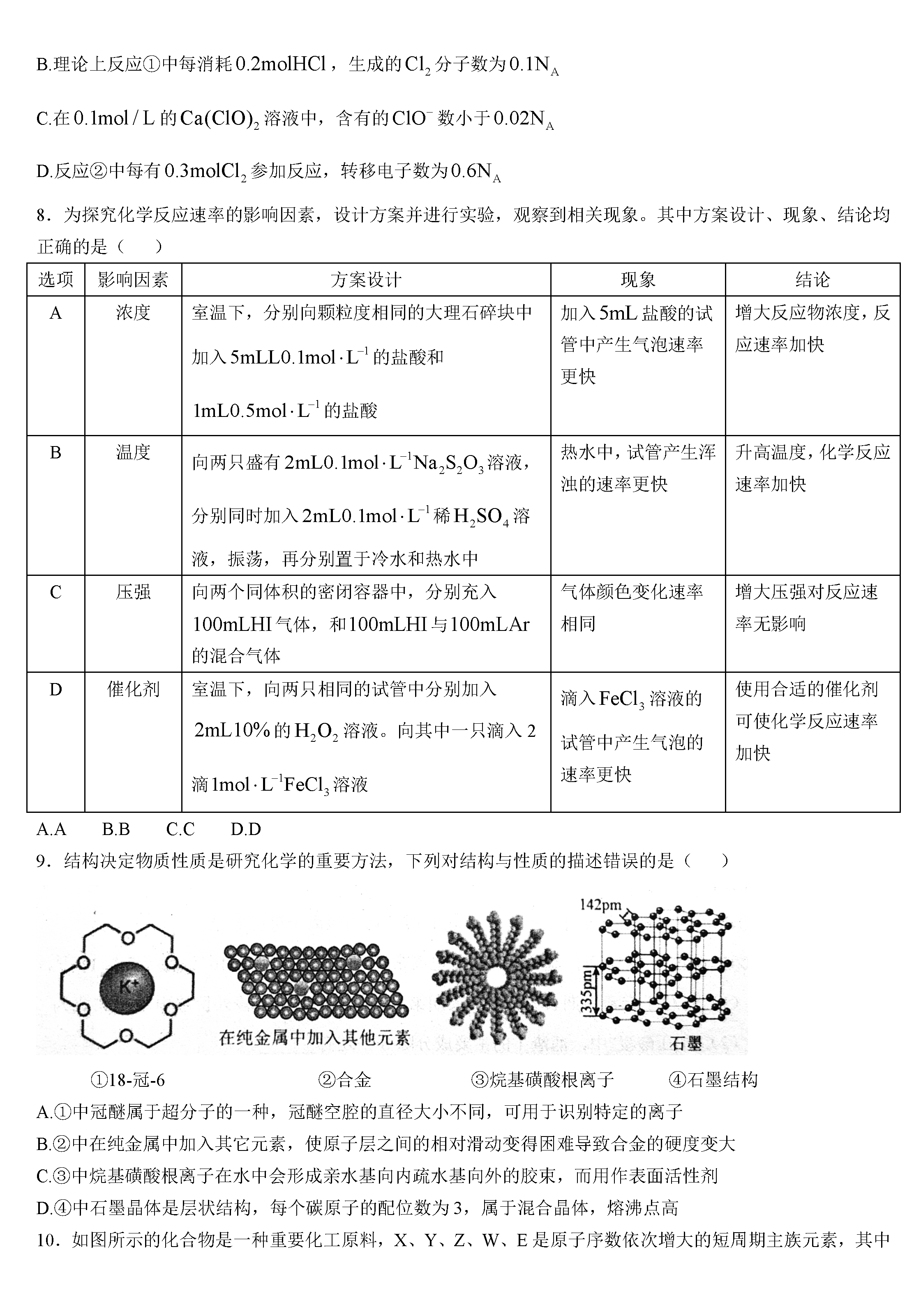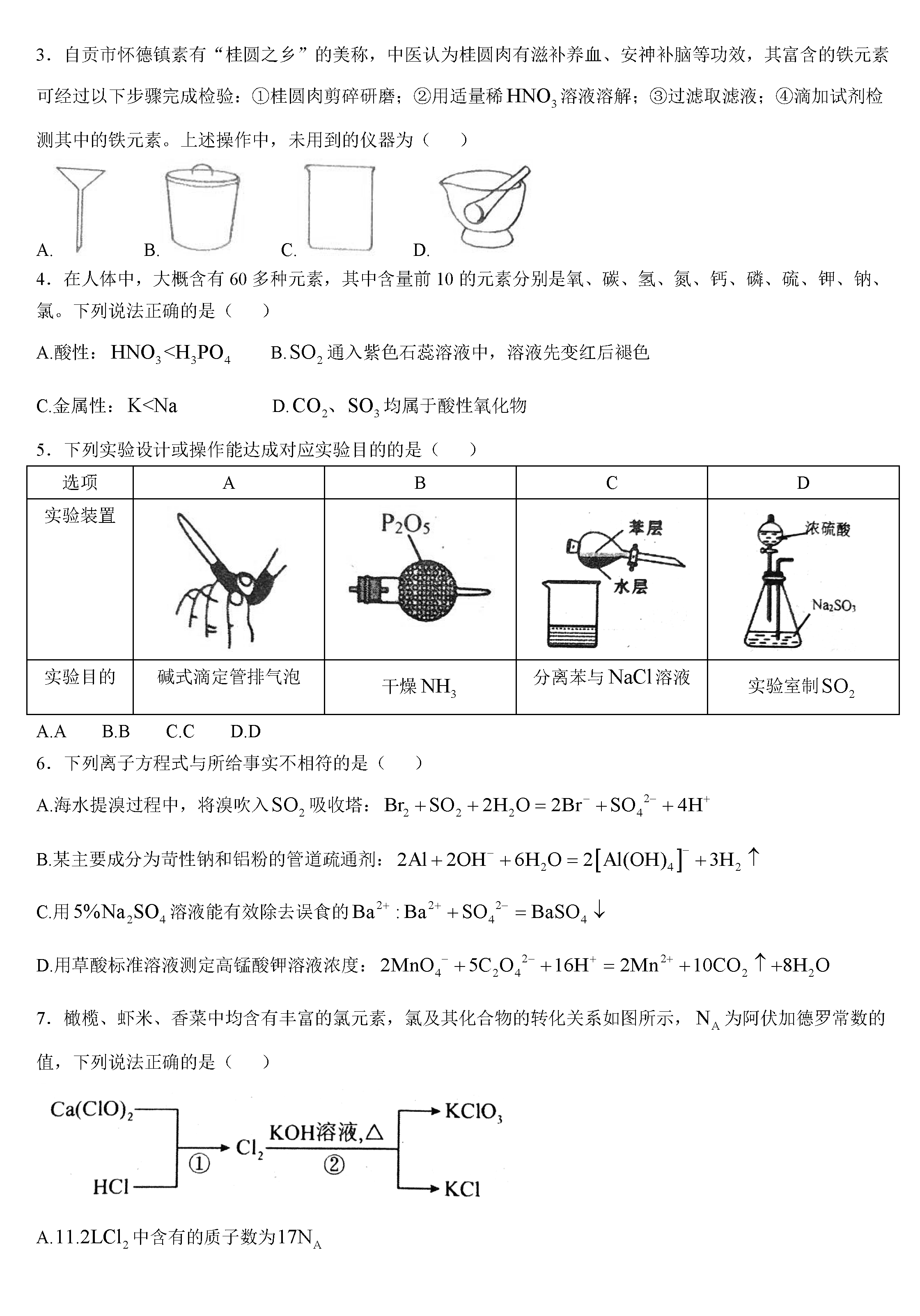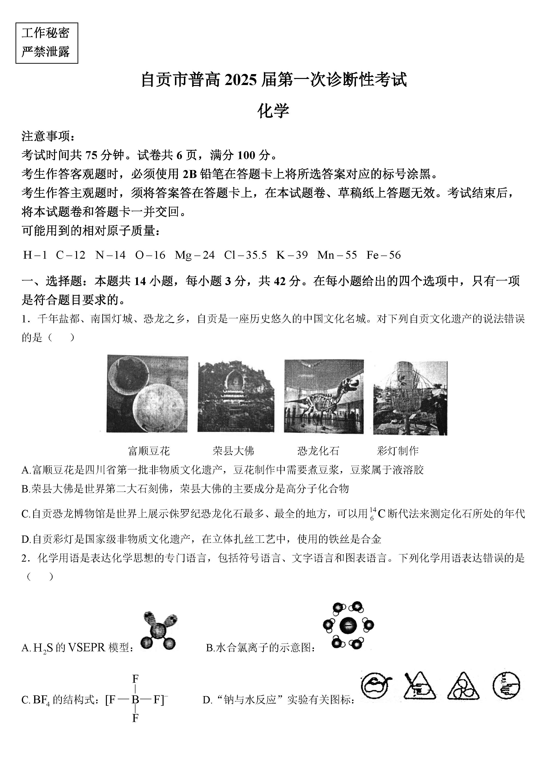 四川自贡普高2025届高三第一次诊断性考化学试题及答案