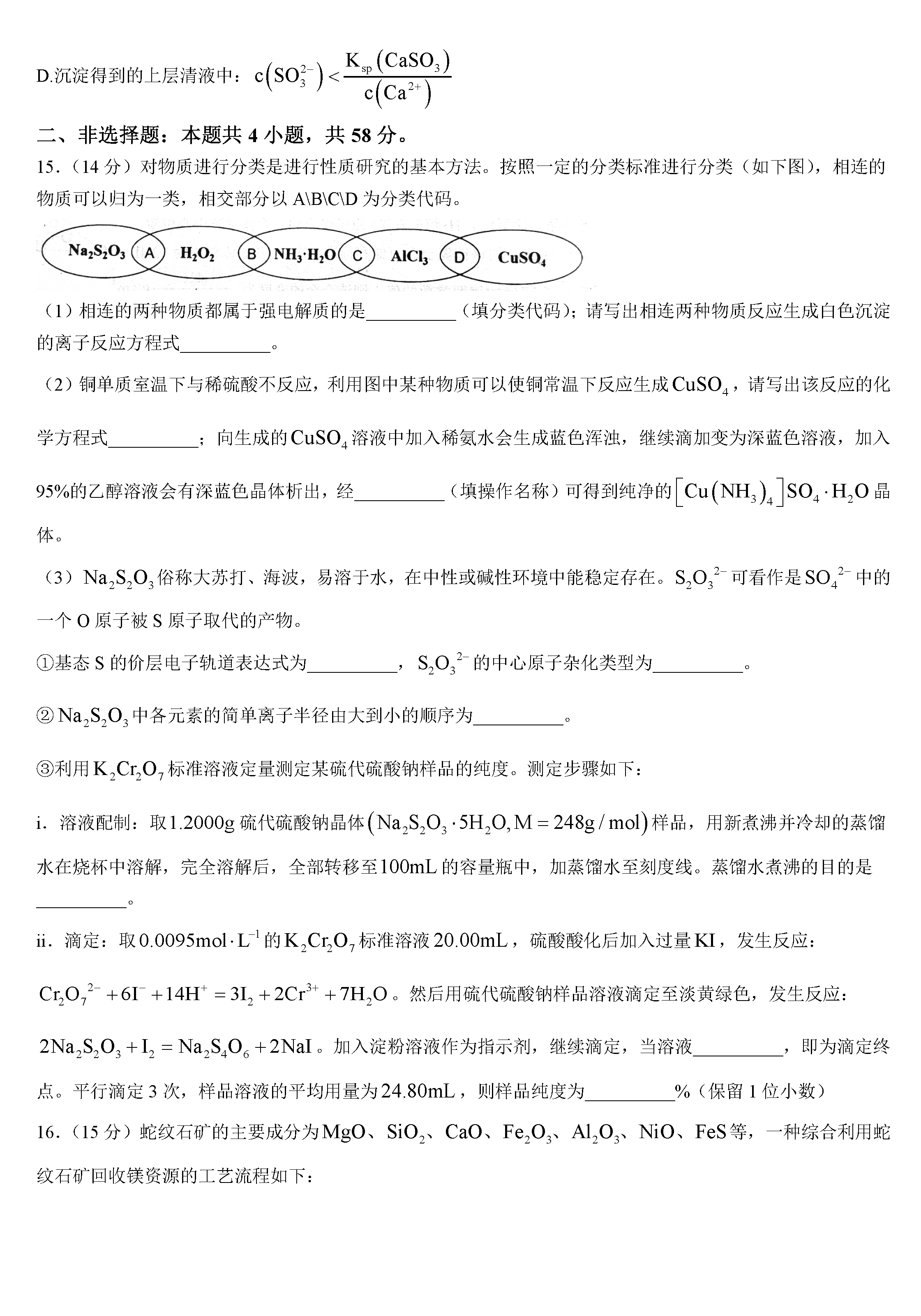 四川自贡普高2025届高三第一次诊断性考化学考试已于近日开考,为方便考生考后及时查看考试情况,查漏补缺、弥补不足,本文整理了试题答案解析相关信息!