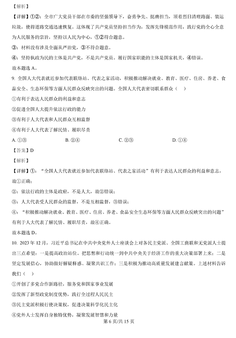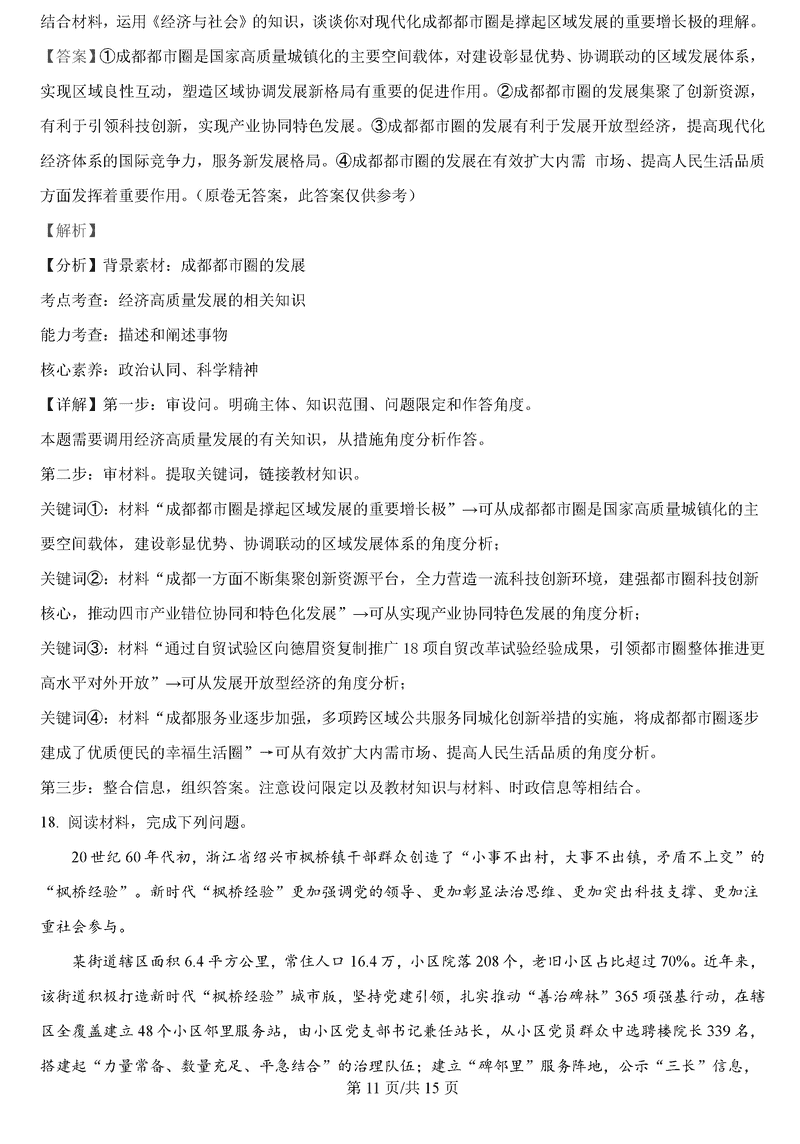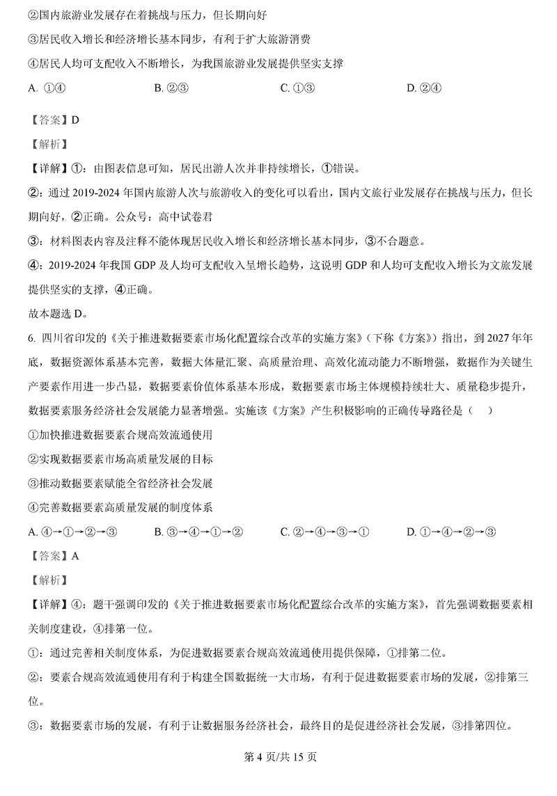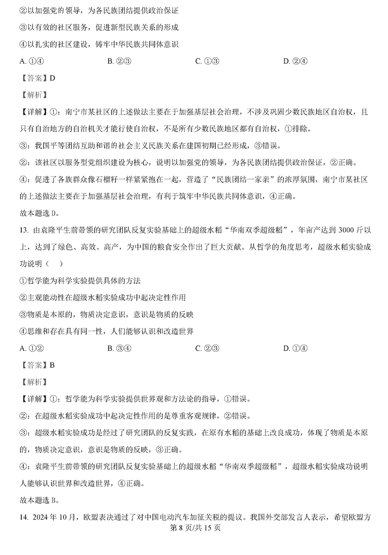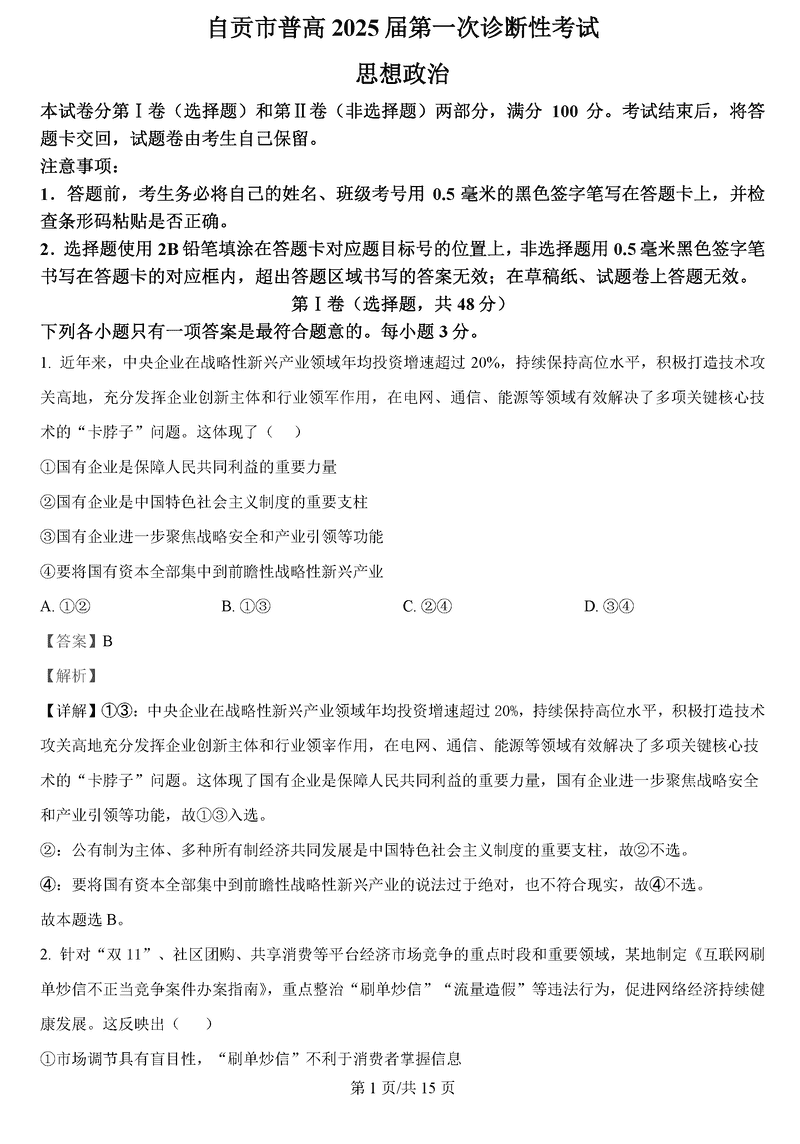 四川自贡普高2025届高三第一次诊断性考政治试题及答案