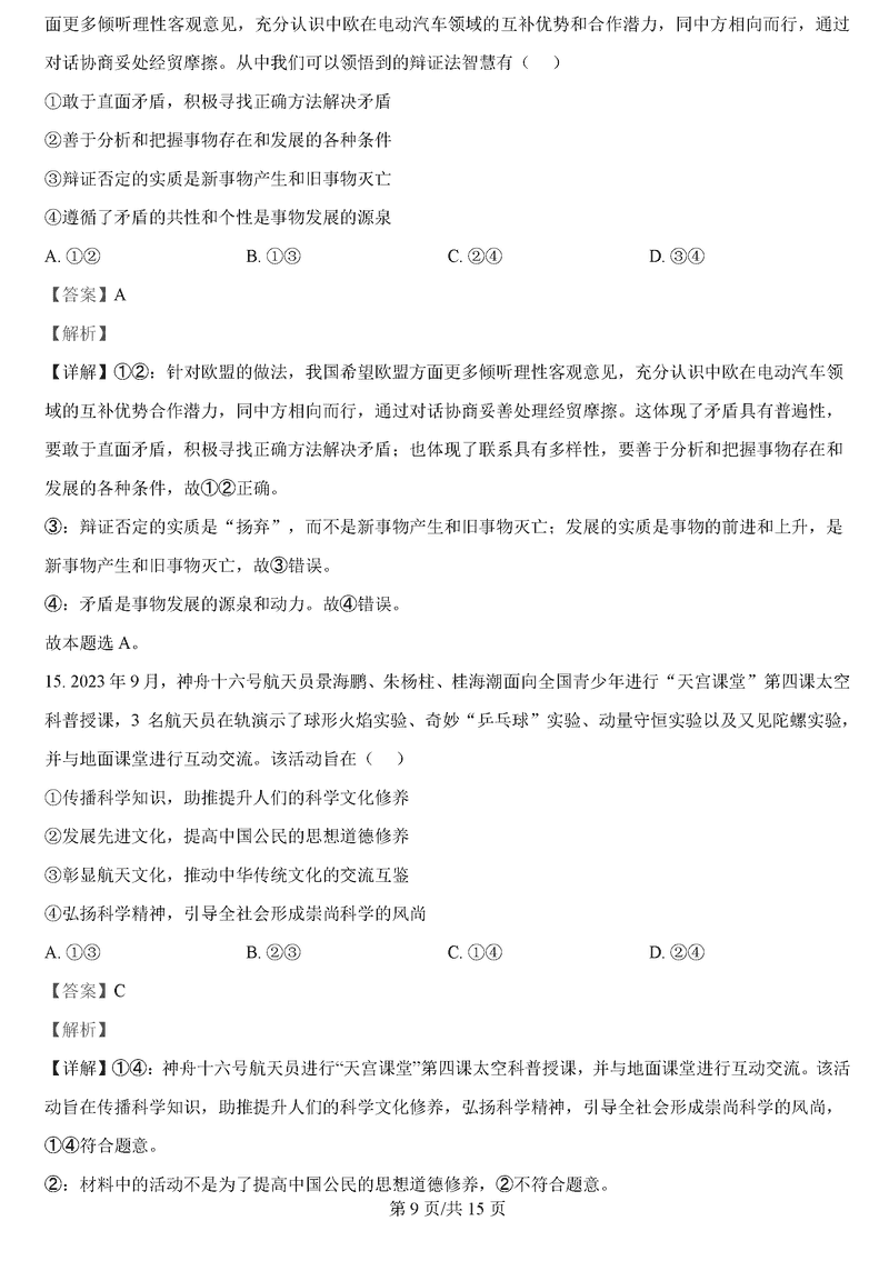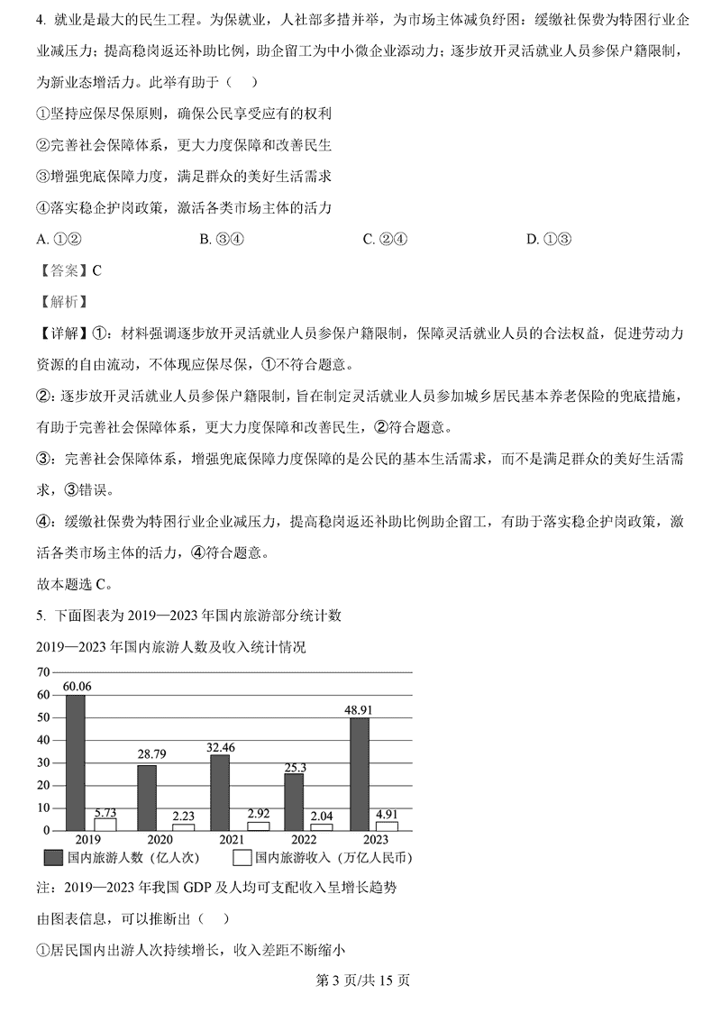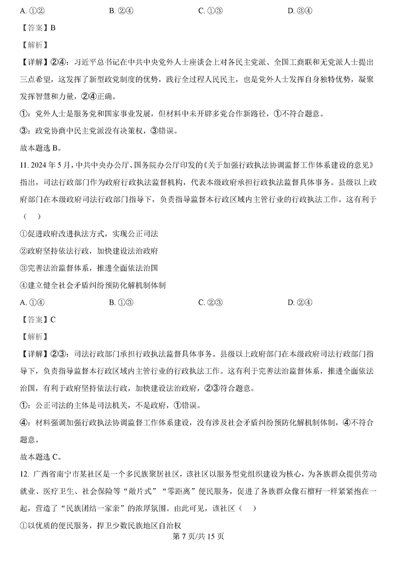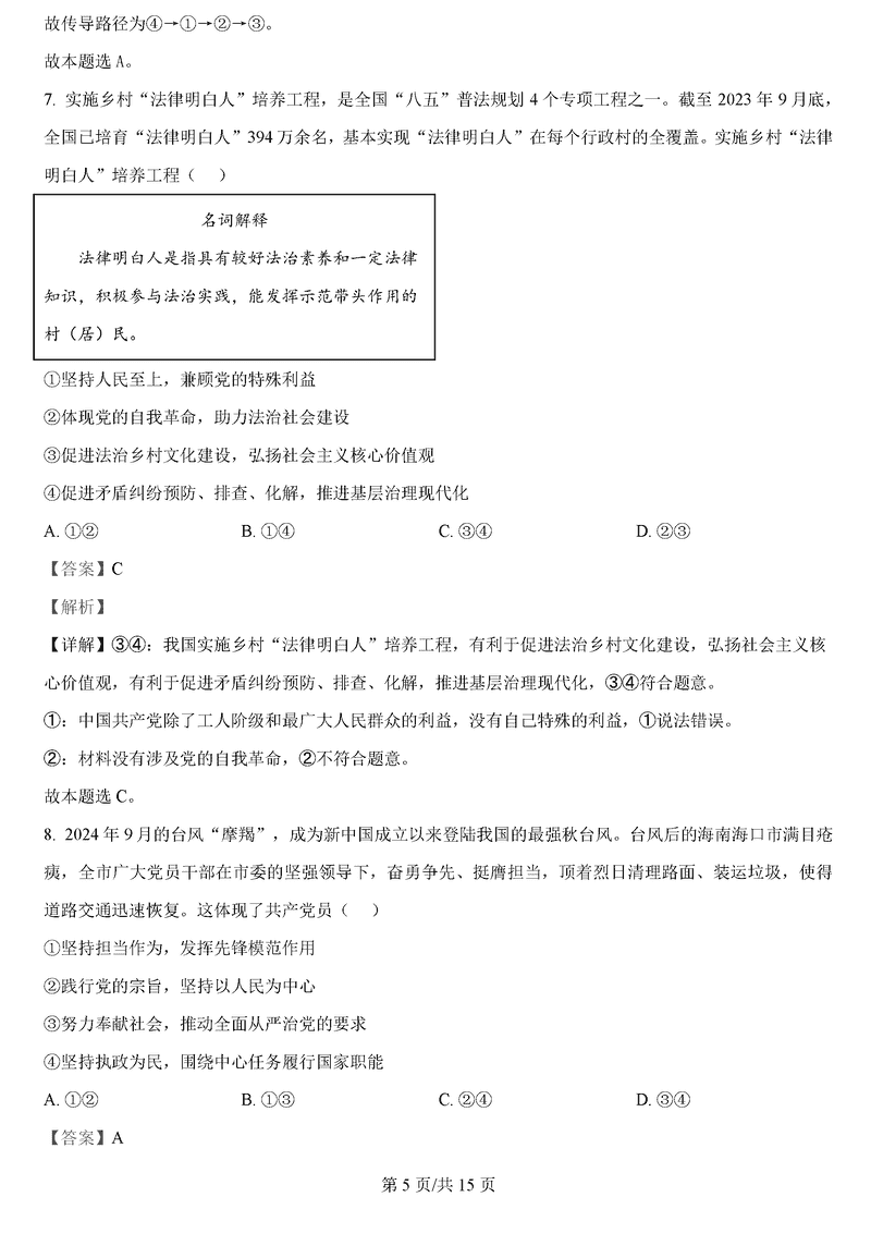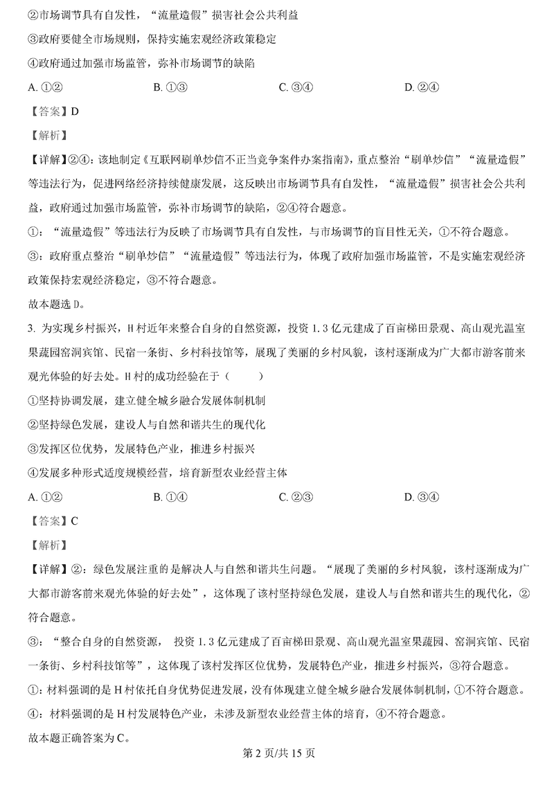 四川自贡普高2025届高三第一次诊断性考政治试题及答案