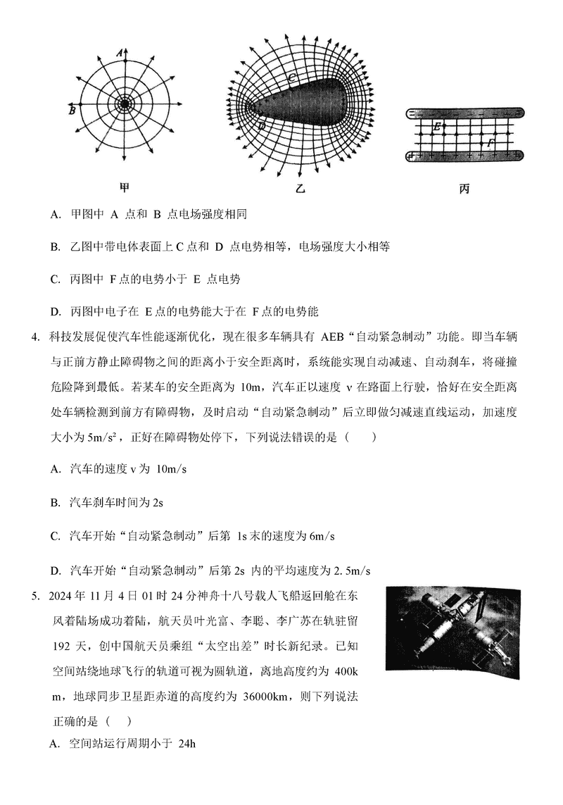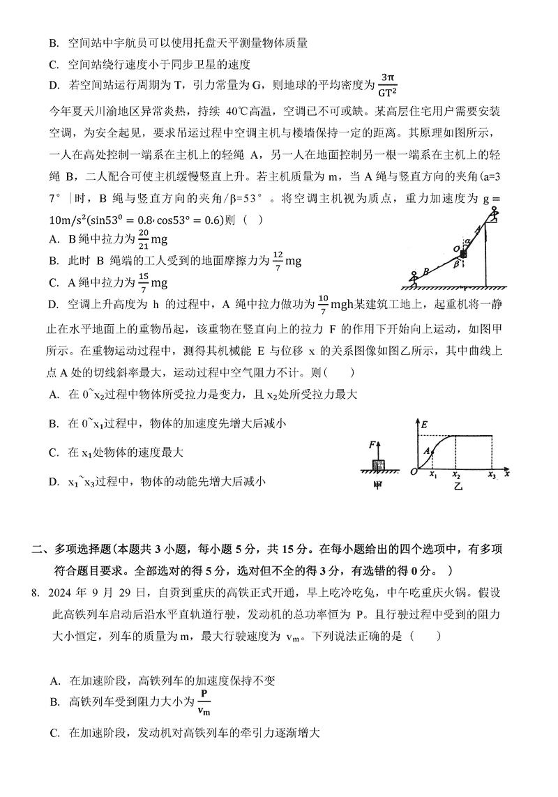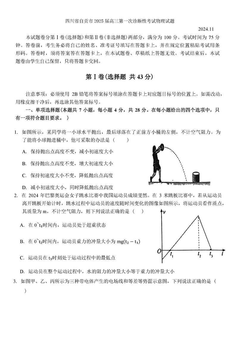 四川自贡普高2025届高三第一次诊断性考物理试题及答案