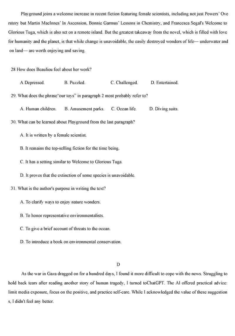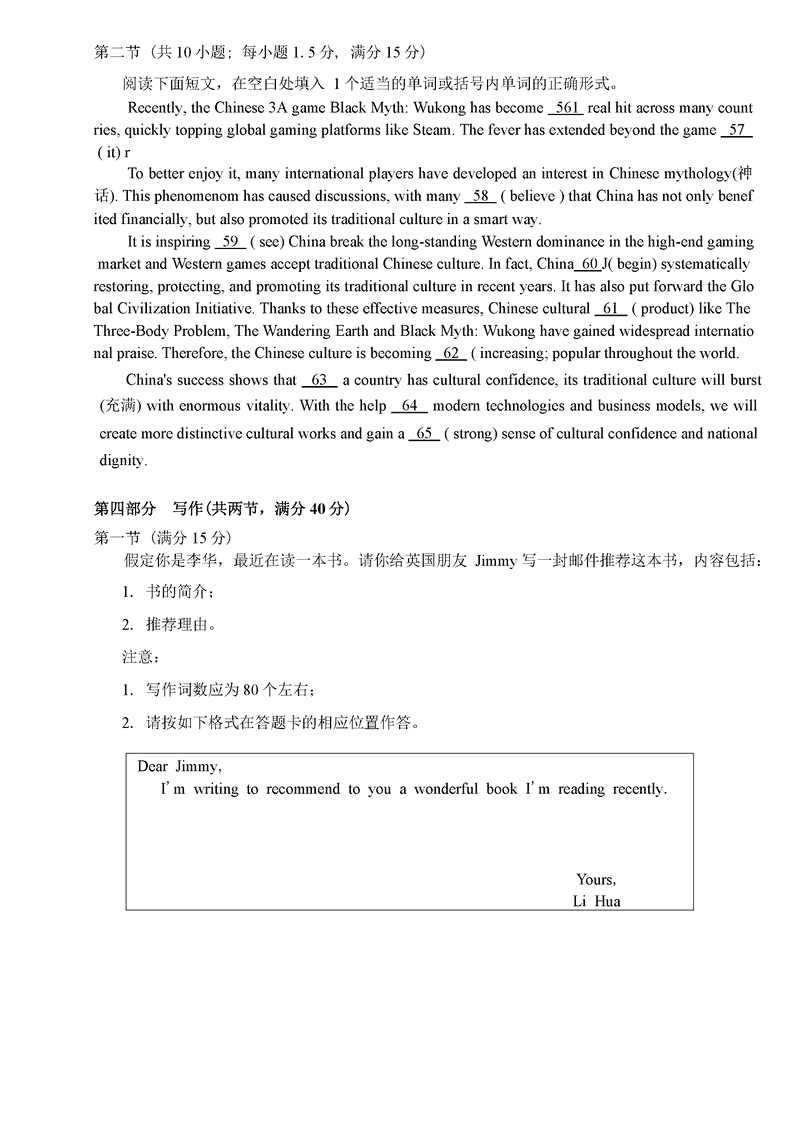四川自贡普高2025届高三第一次诊断性考英语试题及答案