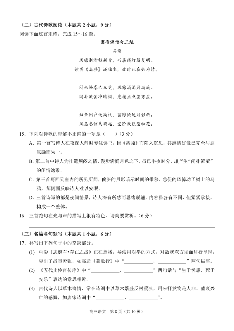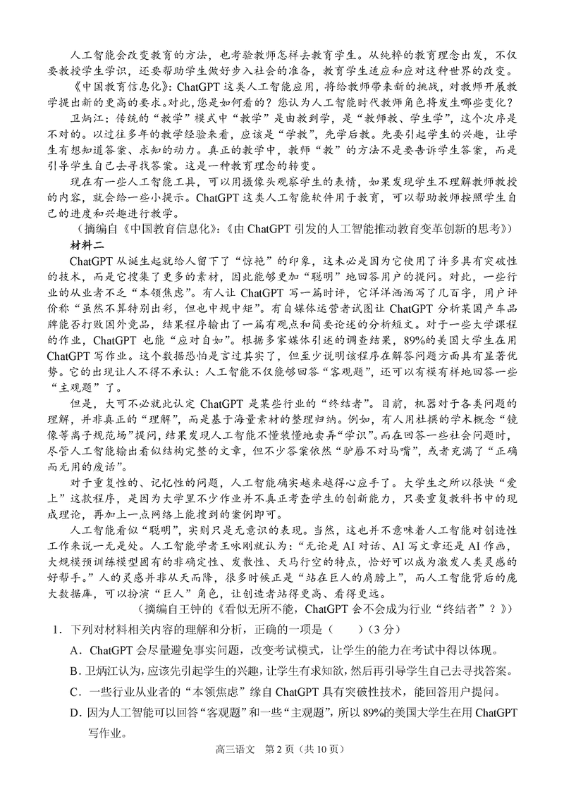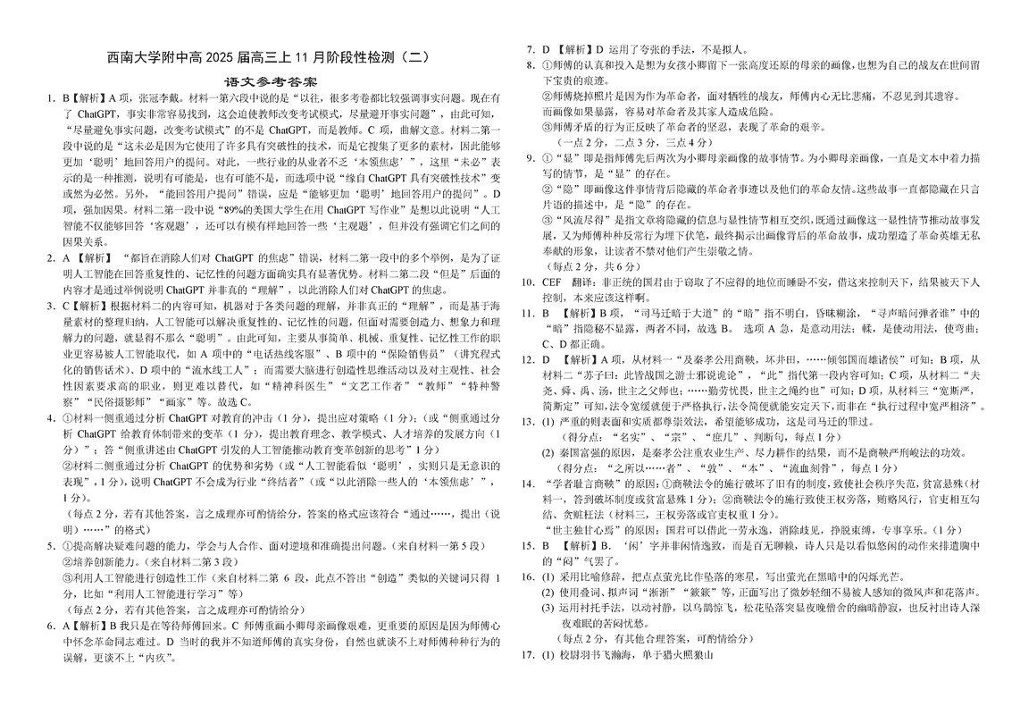 重庆西南大学附中2025届高三上学期11月阶段性检测(二)语文考试已于近日开考,为方便考生考后及时查看考试情况,查漏补缺、弥补不足,本文整理了试题答案解析相关信息!