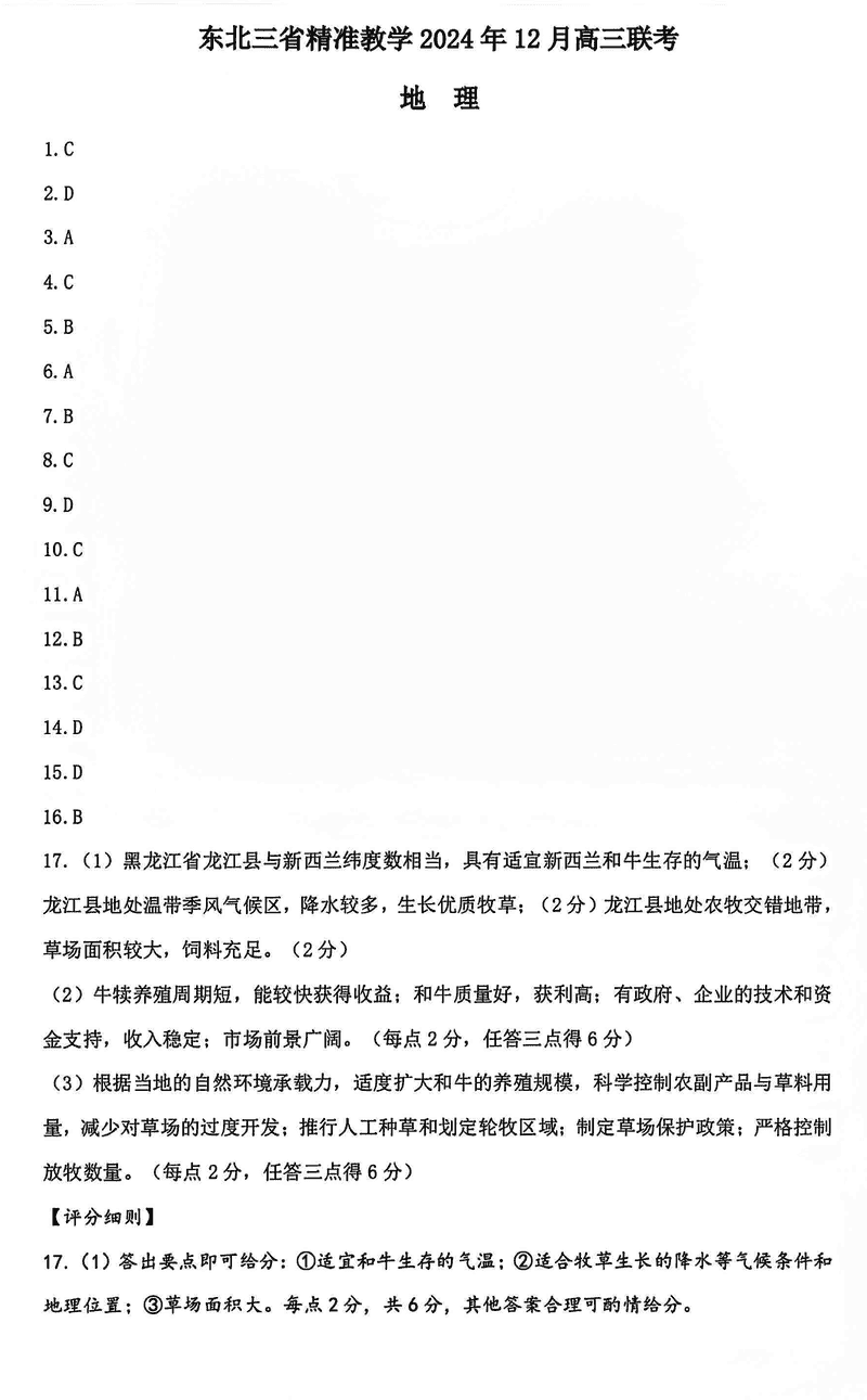 东北三省精准教学2025届高三上学期12月联考地理考试已于近日开考,为方便考生考后及时查看考试情况,查漏补缺、弥补不足,本文整理了试题答案解析相关信息!