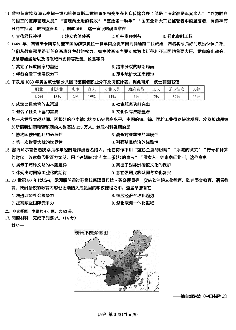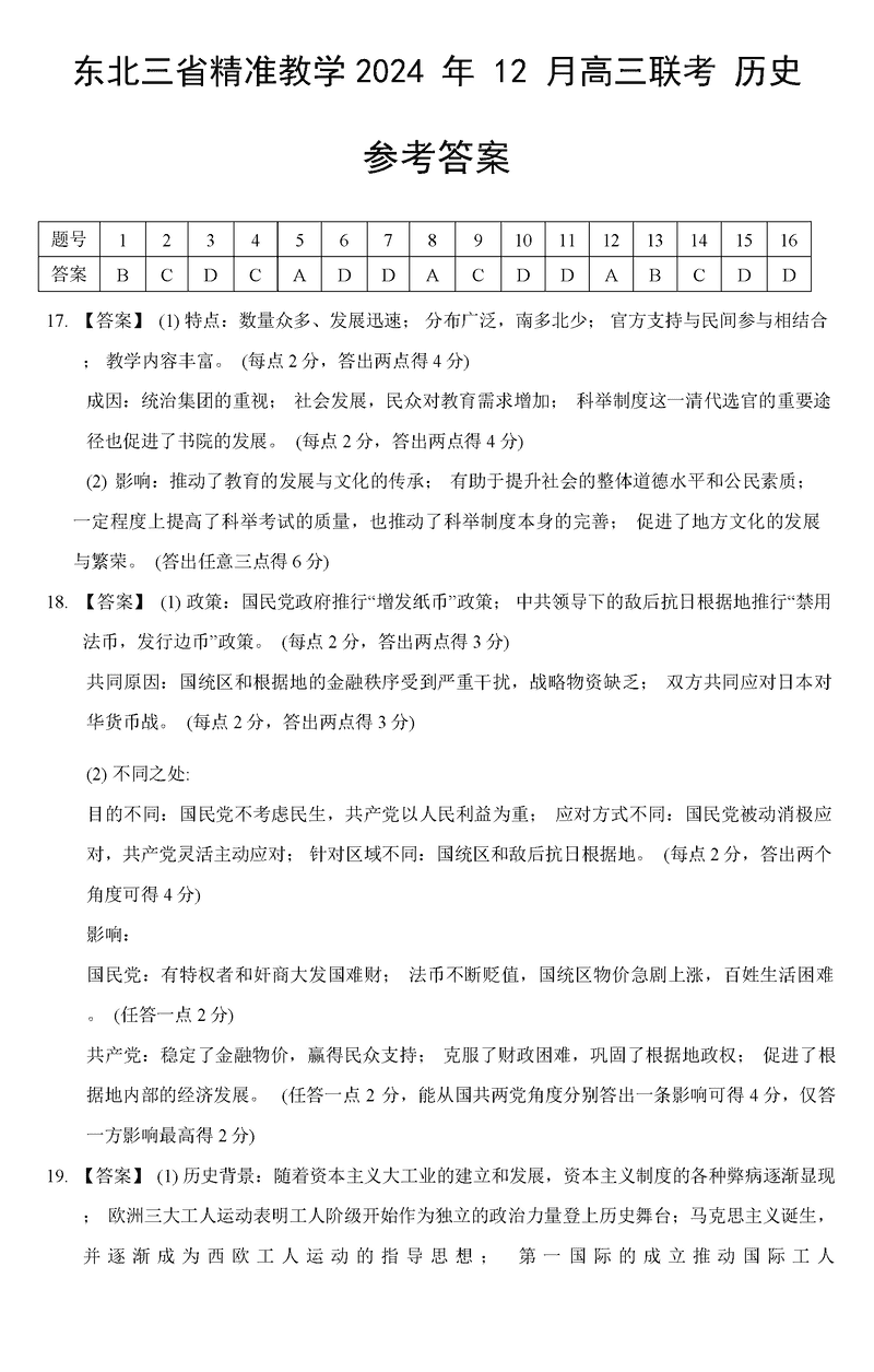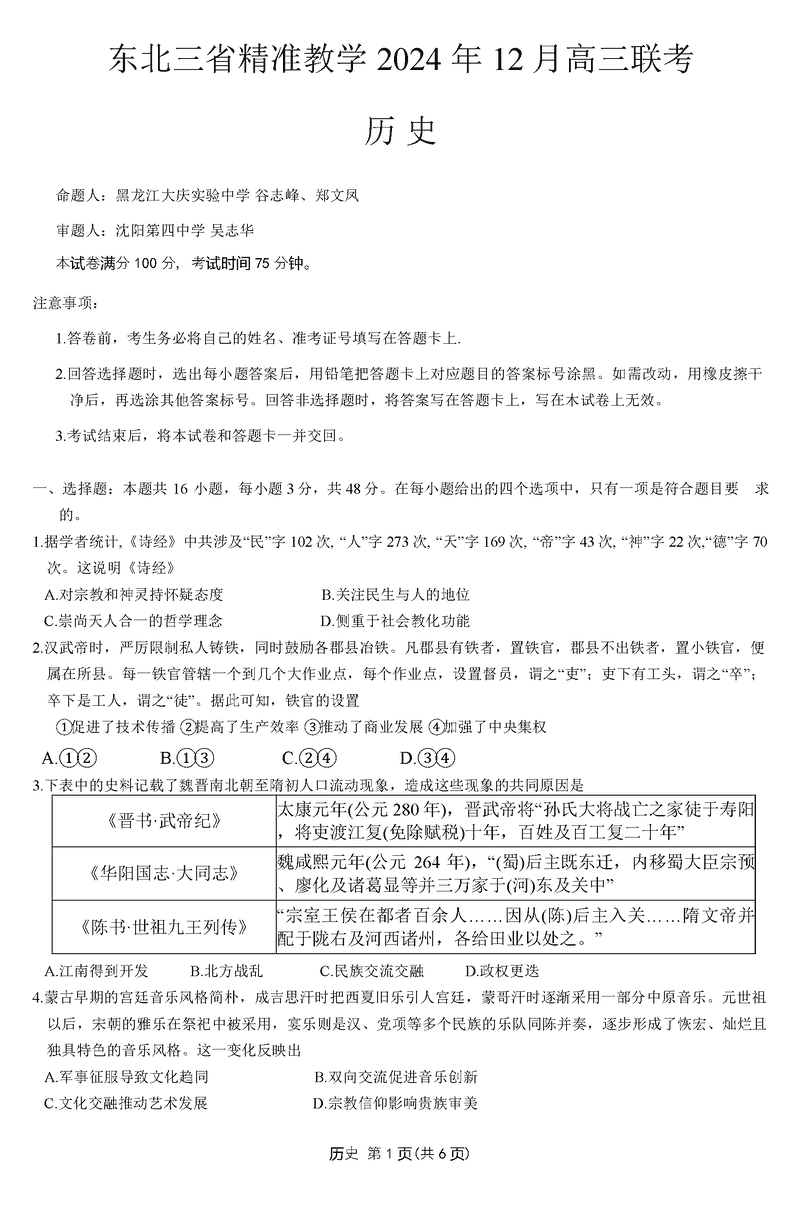 东北三省精准教学2025届高三上学期12月联考历史试题及答案
