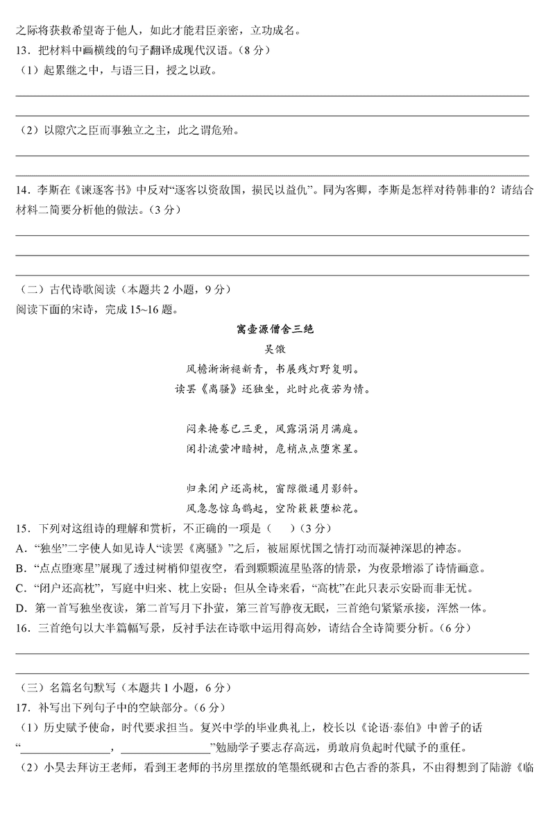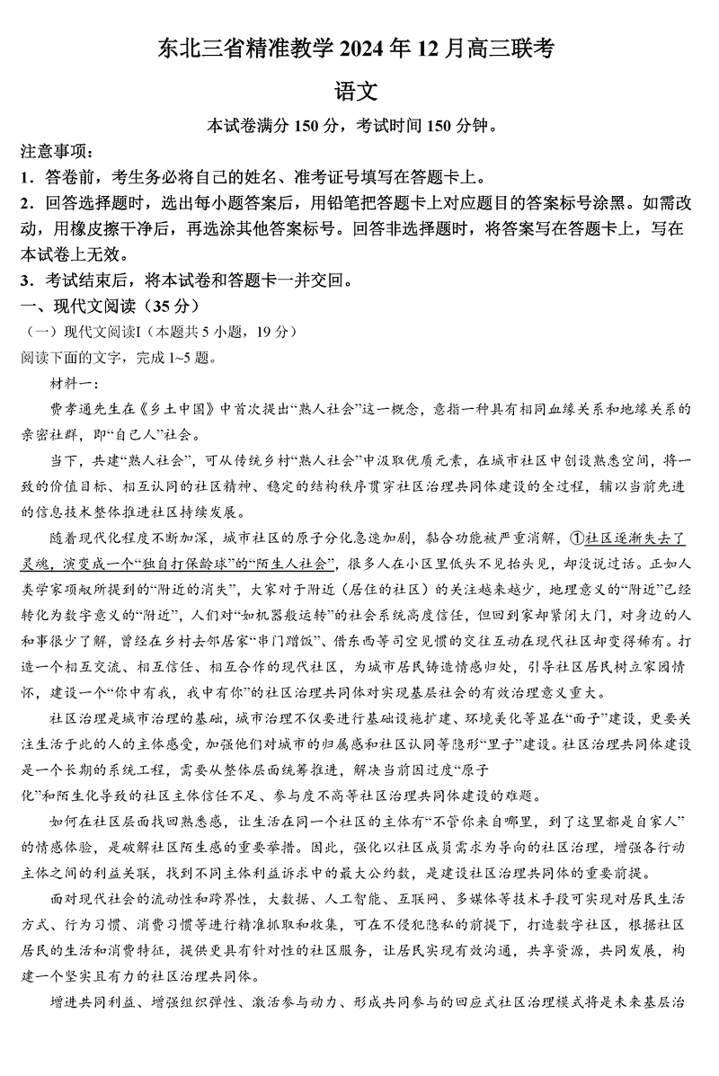 东北三省精准教学2025届高三上学期12月联考语文考试已于近日开考,为方便考生考后及时查看考试情况,查漏补缺、弥补不足,本文整理了试题答案解析相关信息!