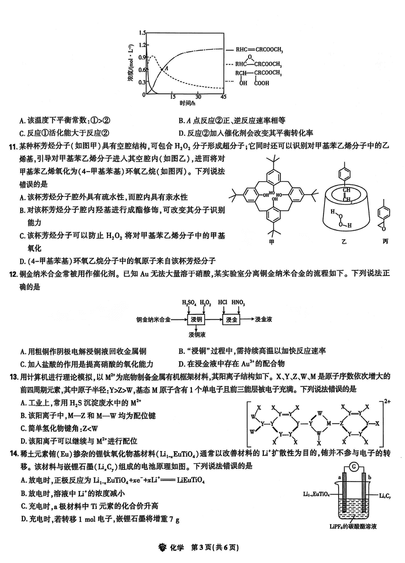 东北三省精准教学2025届高三上学期12月联考化学试题及答案