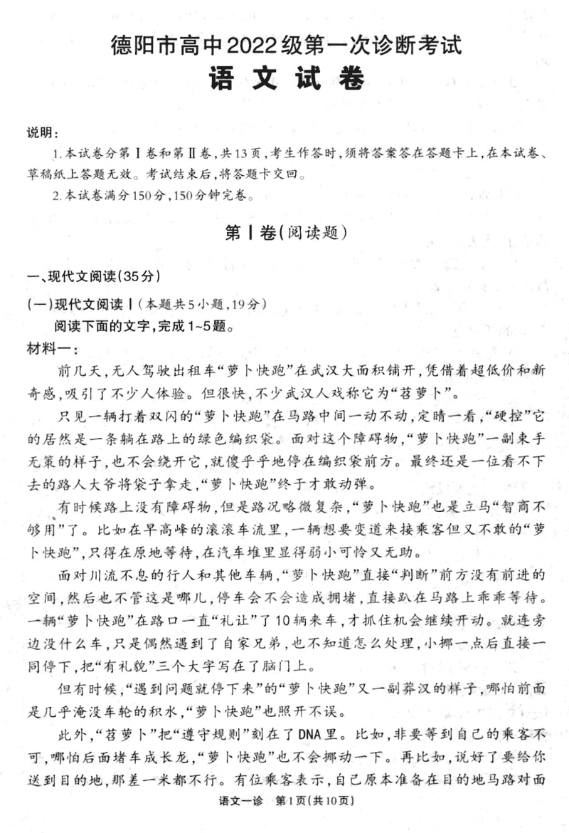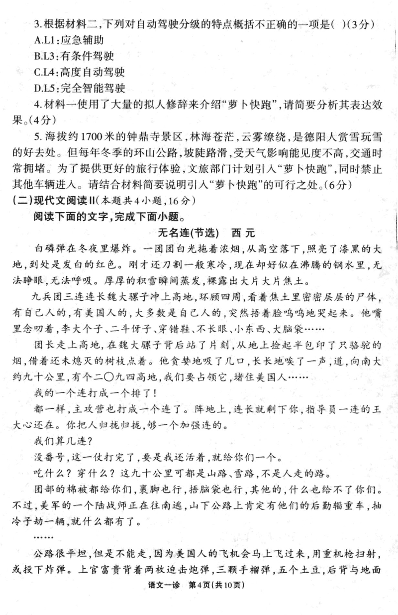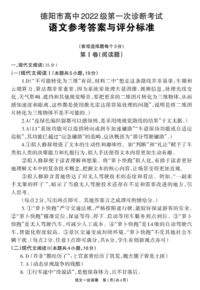 德阳一诊2025届高三第一次诊断考试语文试题及答案 时间:2024-12-05 17:20 四川 语文试题 德阳一诊2025届高三第一次诊断考试语文考试已于近日开考,为方便考生考后及时查看考试情况,查漏补缺、弥补不足,本文整理了试题答案解析相关信息! 汇总:德阳一诊2025届高三第一次诊断考试试题及答案汇总 语文试题及答案解析
