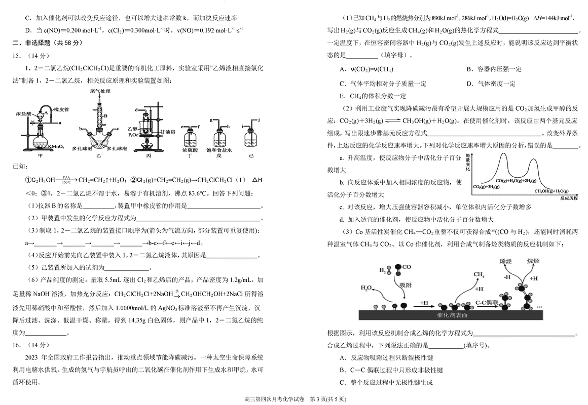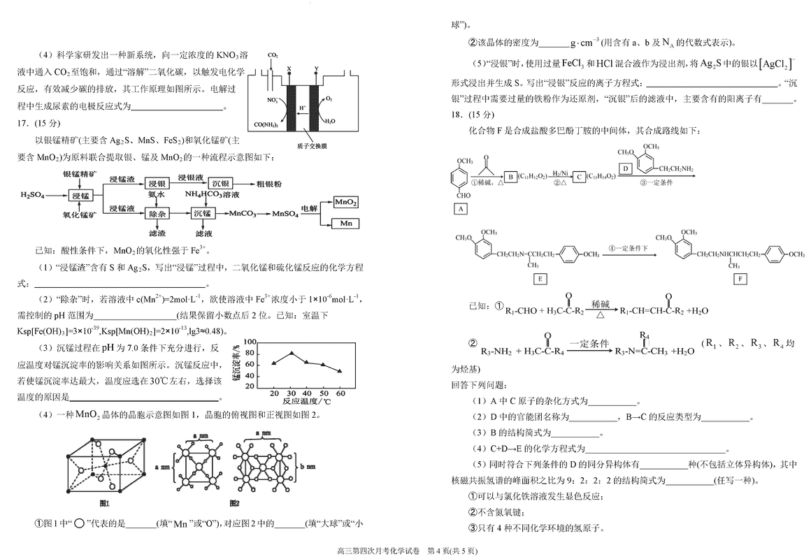 银川一中2025届高三上学期第四次月考化学试题及答案 时间:2024-12-05 17:39 宁夏 理综试题 银川一中2025届高三上学期第四次月考化学考试已于近日开考,为方便考生考后及时查看考试情况,查漏补缺、弥补不足,本文整理了试题答案解析相关信息! 汇总:银川一中2025届高三上学期第四次月考试题及答案汇总 化学试题及答案解析