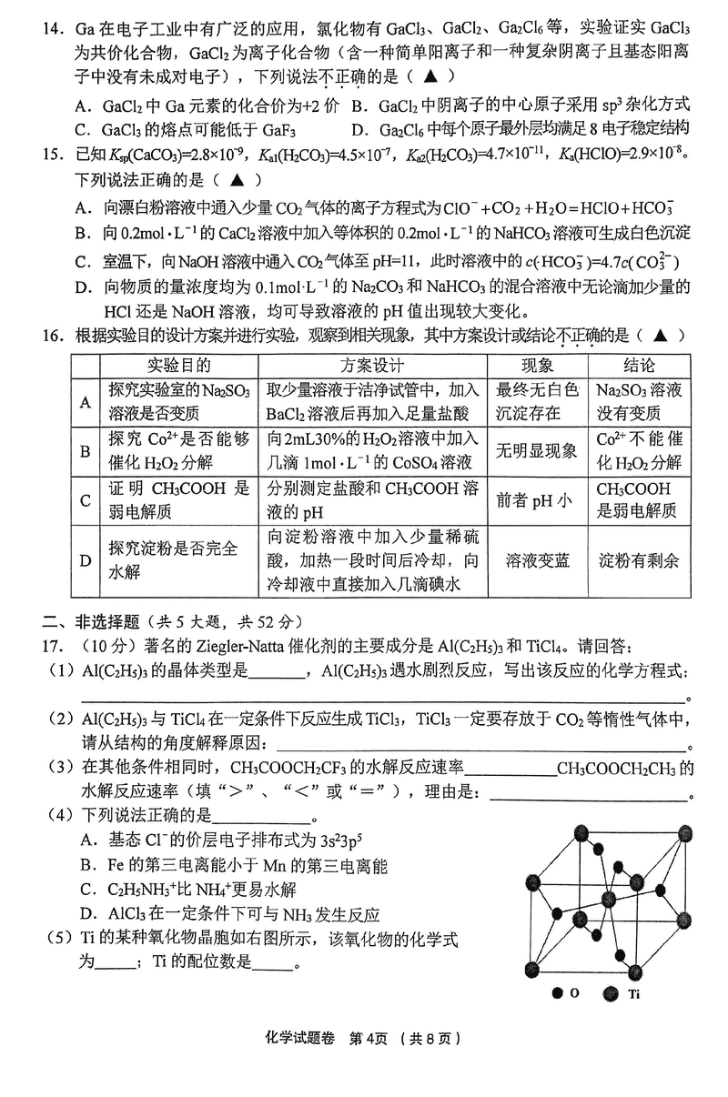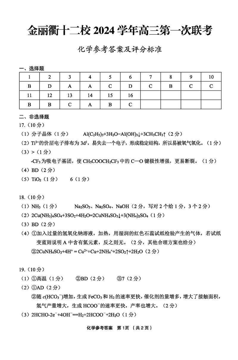 金丽衢十二校2024年高三上学期第一次联考化学考试已于近日开考,为方便考生考后及时查看考试情况,查漏补缺、弥补不足,本文整理了试题答案解析相关信息!