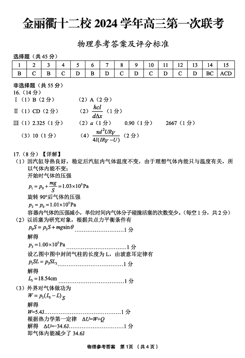 金丽衢十二校2024年高三上学期第一次联考物理考试已于近日开考,为方便考生考后及时查看考试情况,查漏补缺、弥补不足,本文整理了试题答案解析相关信息!