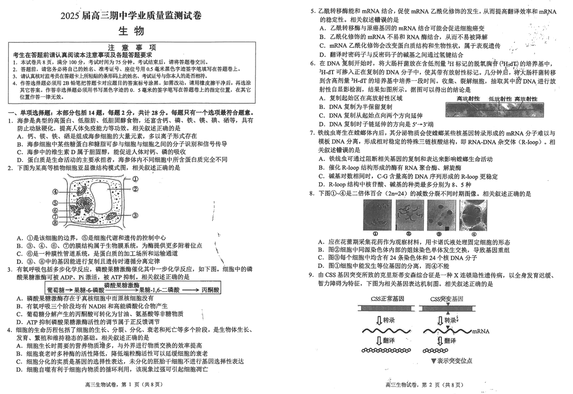 海安高级中学2025届高三上学期期中生物考试已于近日开考,为方便考生考后及时查看考试情况,查漏补缺、弥补不足,本文整理了试题答案解析相关信息!