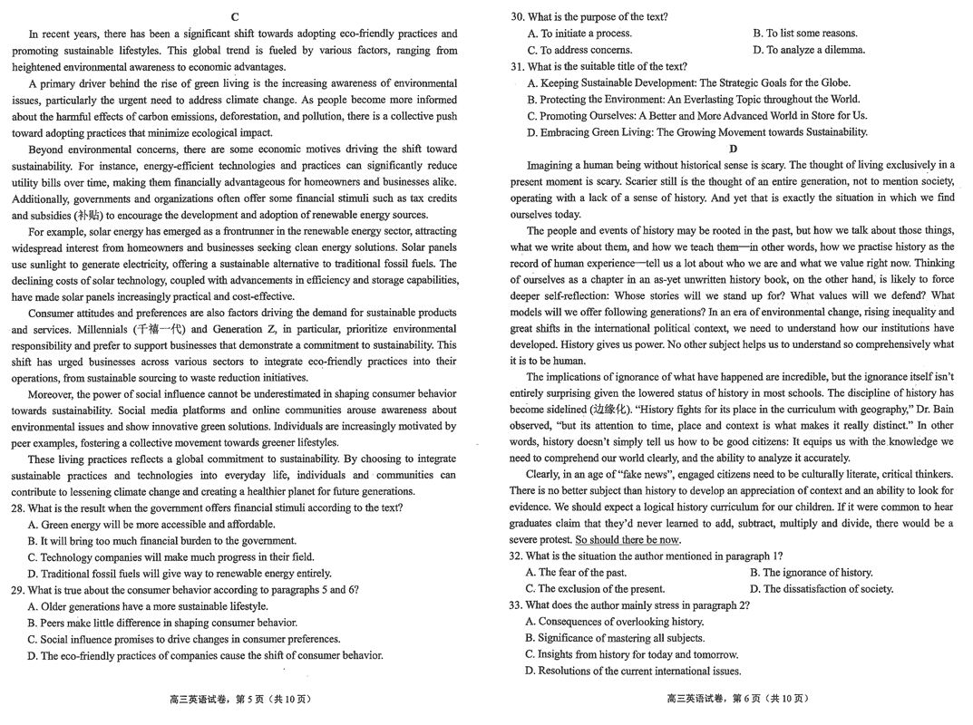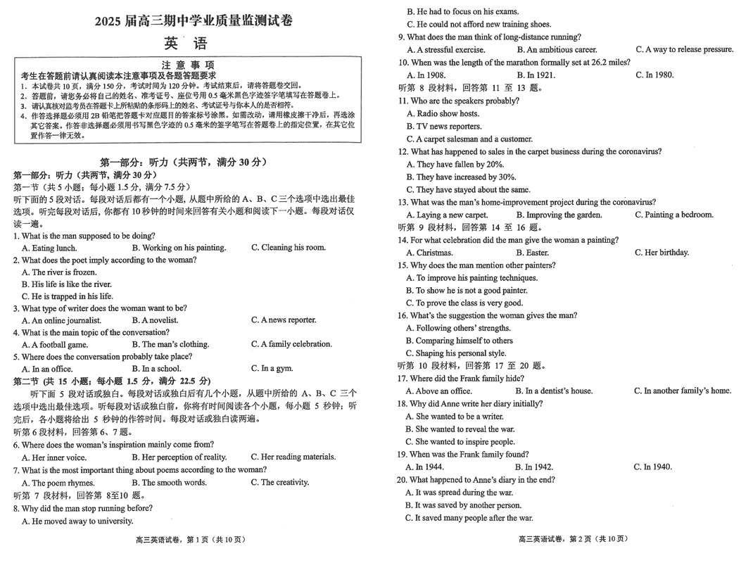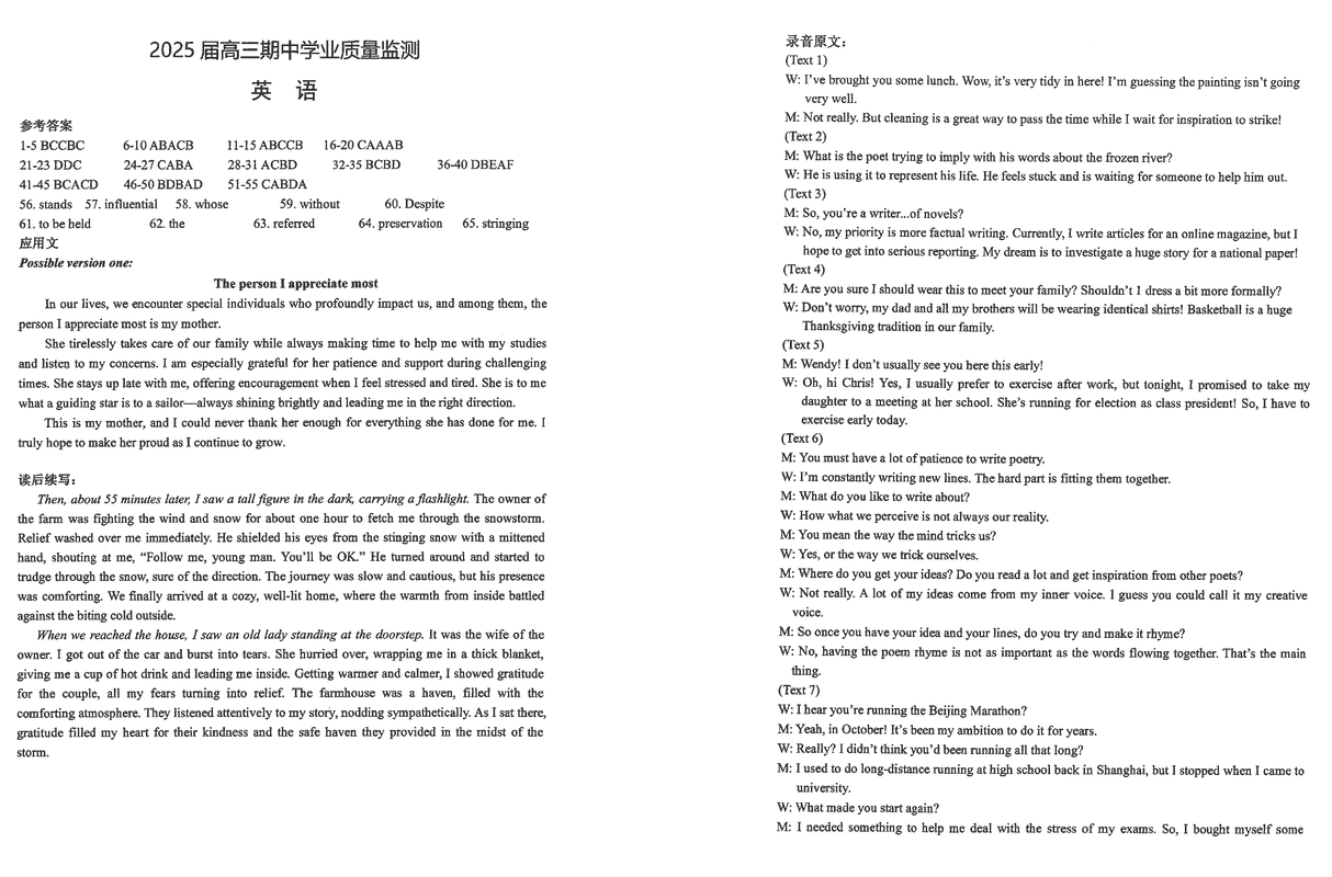 海安高级中学2025届高三上学期期中英语试题及答案