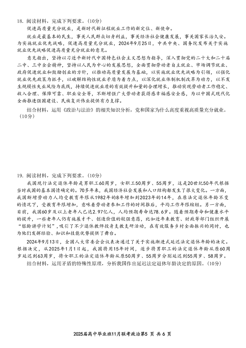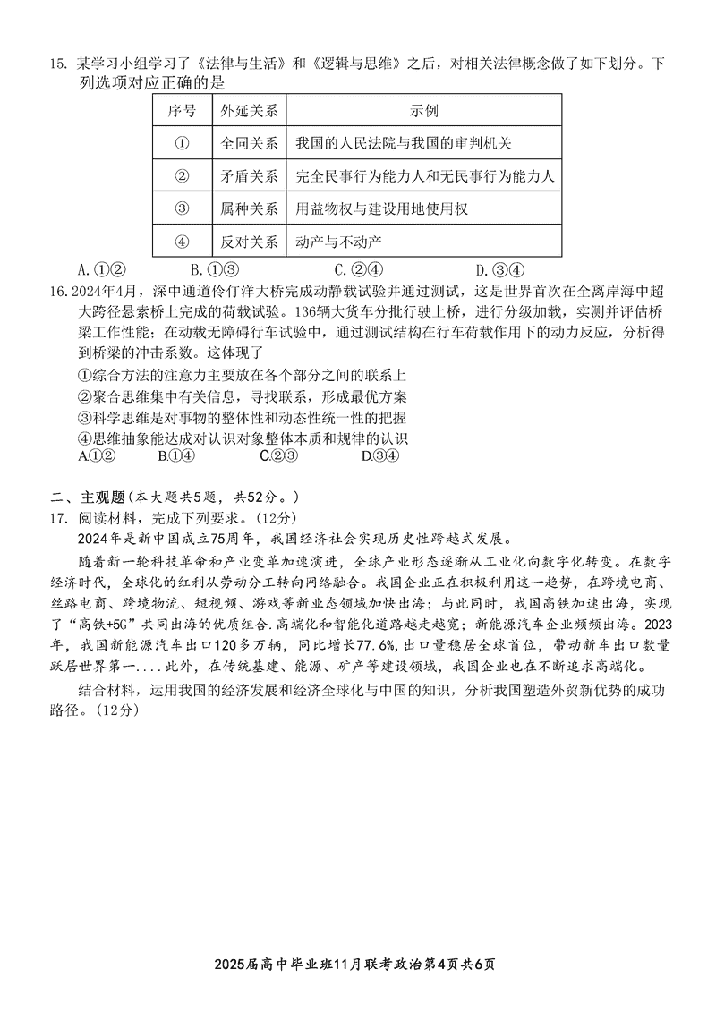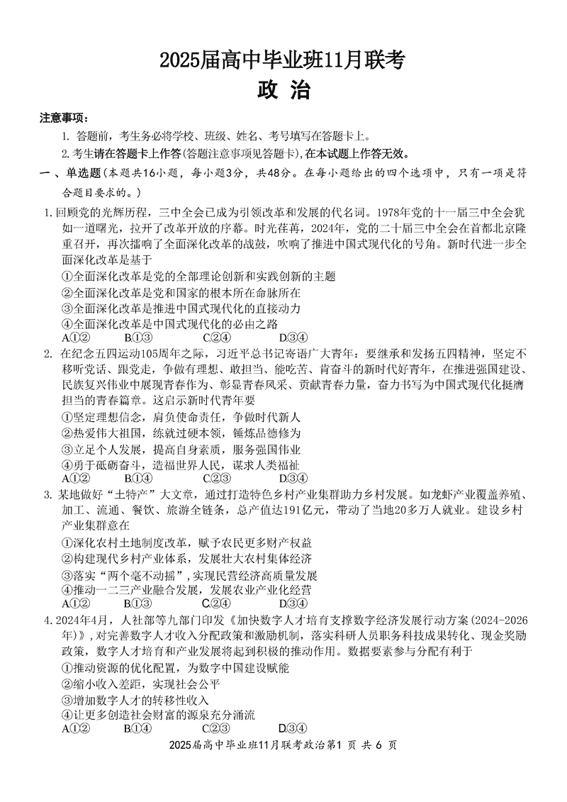 广西新课程教研联盟2025届高三11月联政治试题及答案
