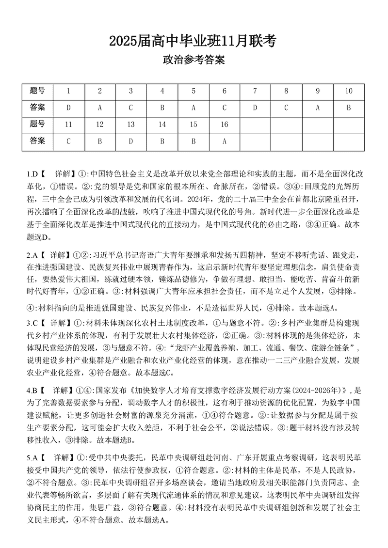 广西新课程教研联盟2025届高三11月联政治考试已于近日开考,为方便考生考后及时查看考试情况,查漏补缺、弥补不足,本文整理了试题答案解析相关信息!