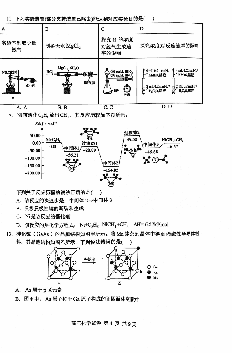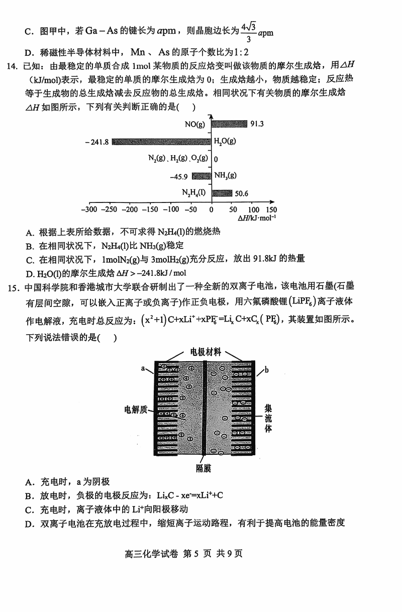大连滨城高中联盟2025届高三上学期期中Ⅱ化学试题及答案