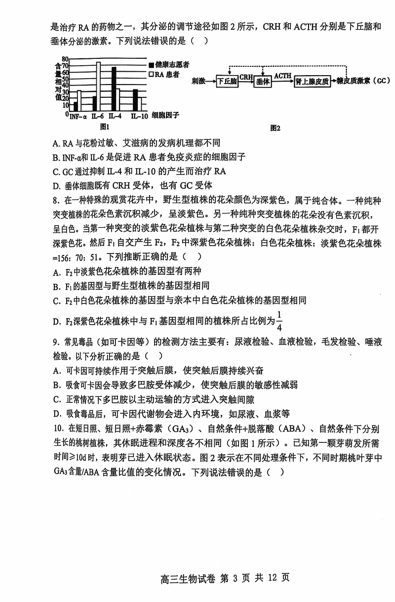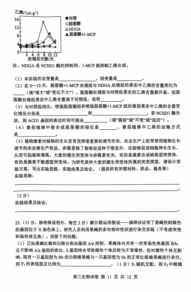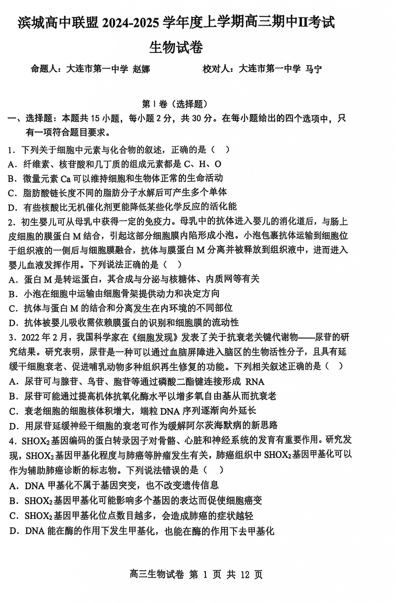 大连滨城高中联盟2025届高三上学期期中Ⅱ生物试题及答案