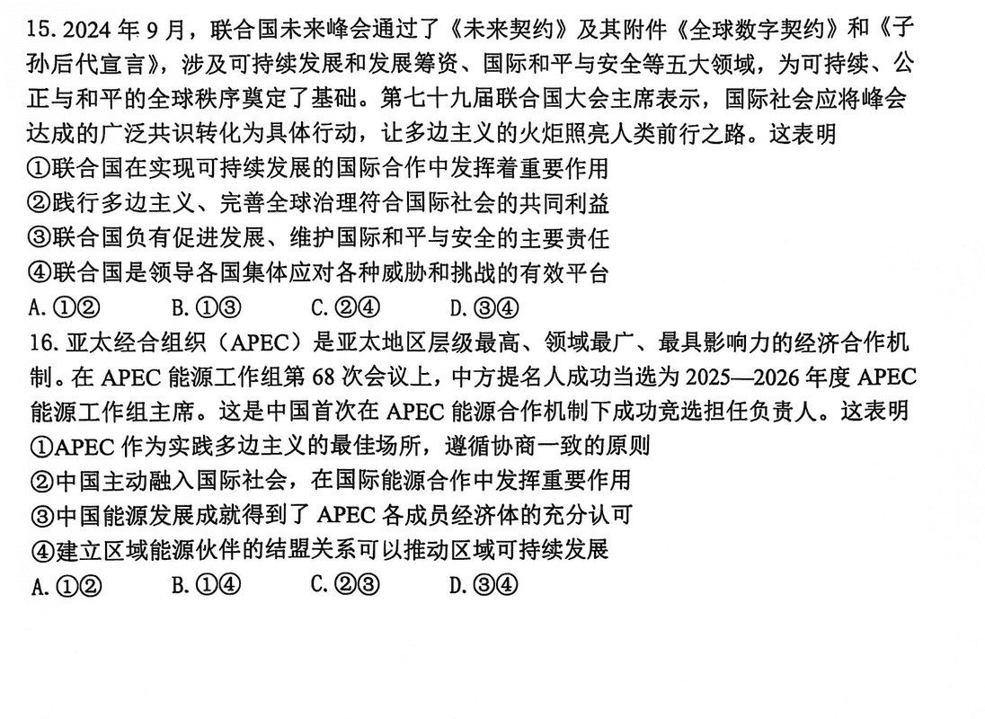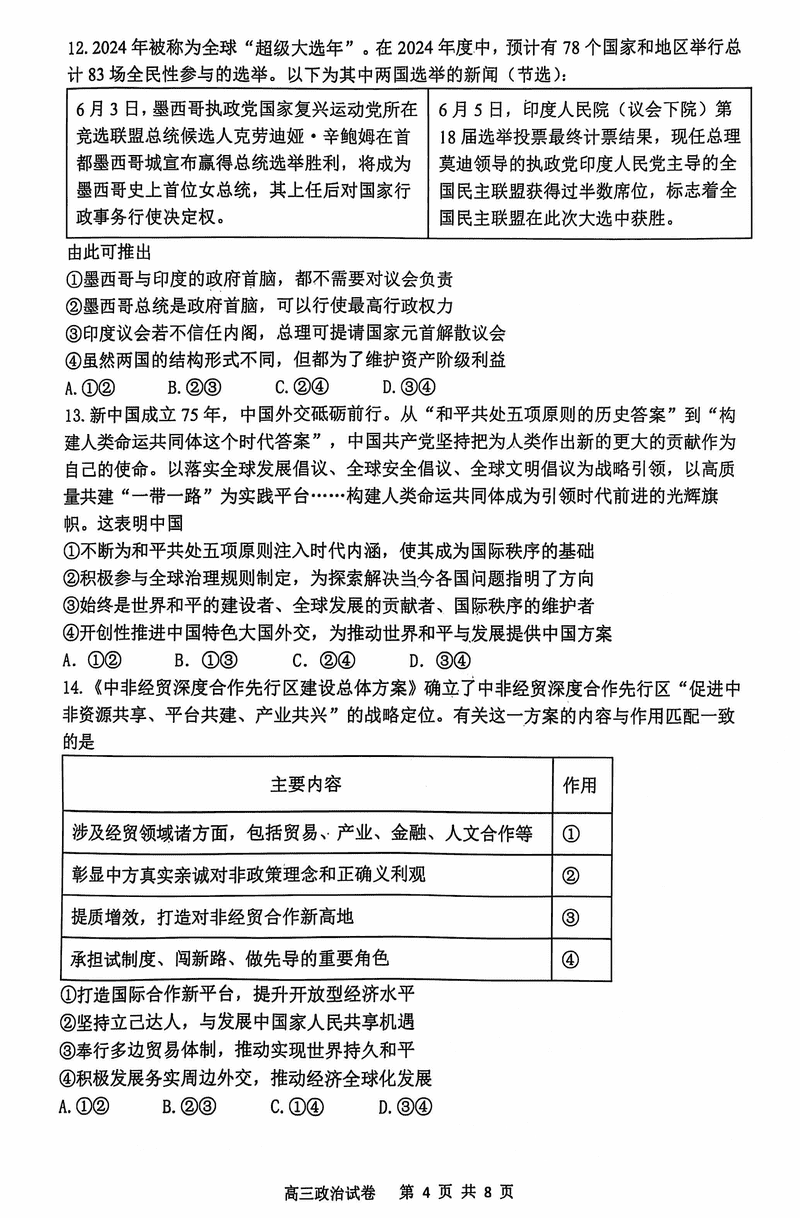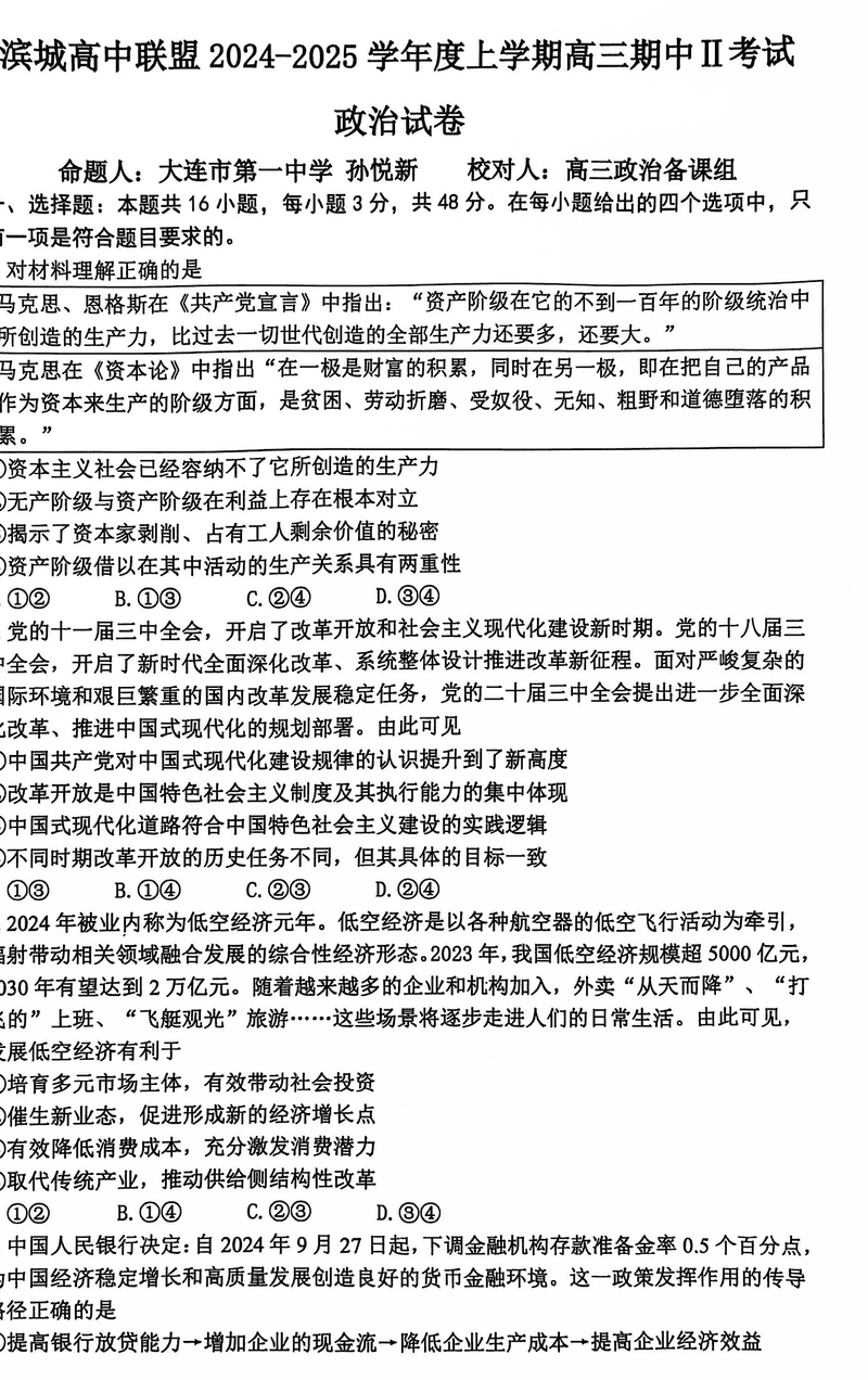 大连滨城高中联盟2025届高三上学期期中Ⅱ政治试题及答案