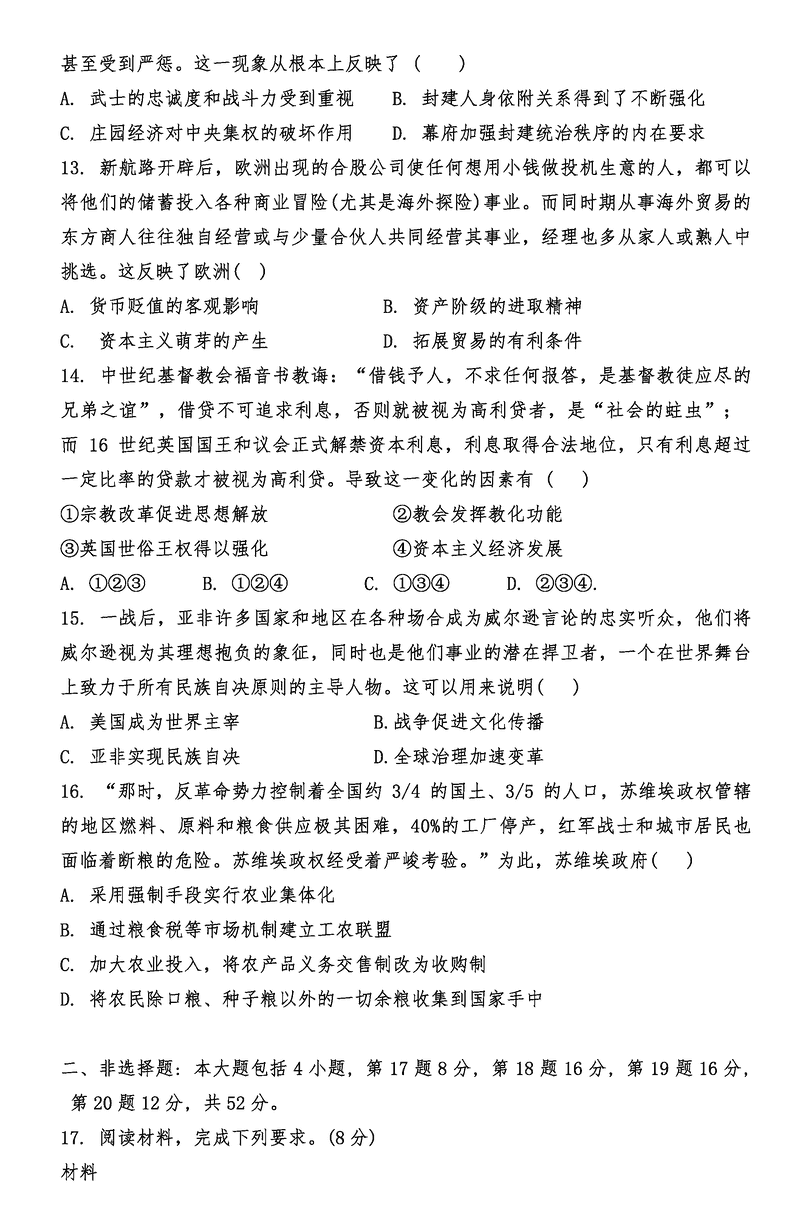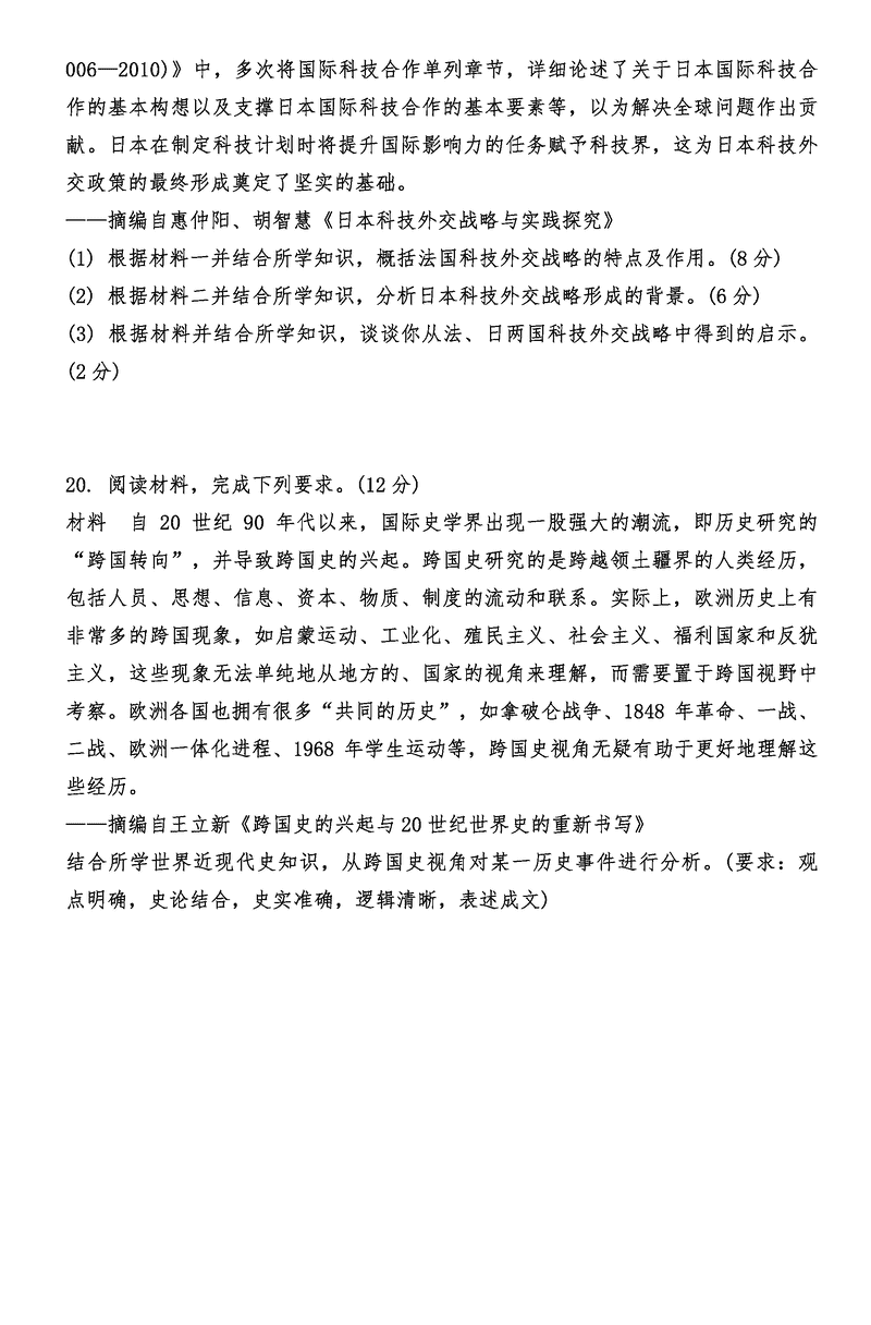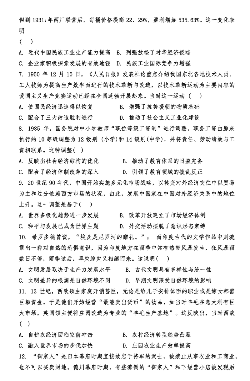 历史试题及答案解析