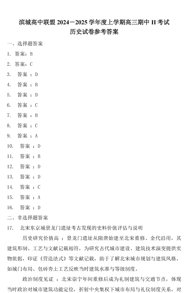 大连滨城高中联盟2025届高三上学期期中Ⅱ历史考试已于近日开考,为方便考生考后及时查看考试情况,查漏补缺、弥补不足,本文整理了试题答案解析相关信息!