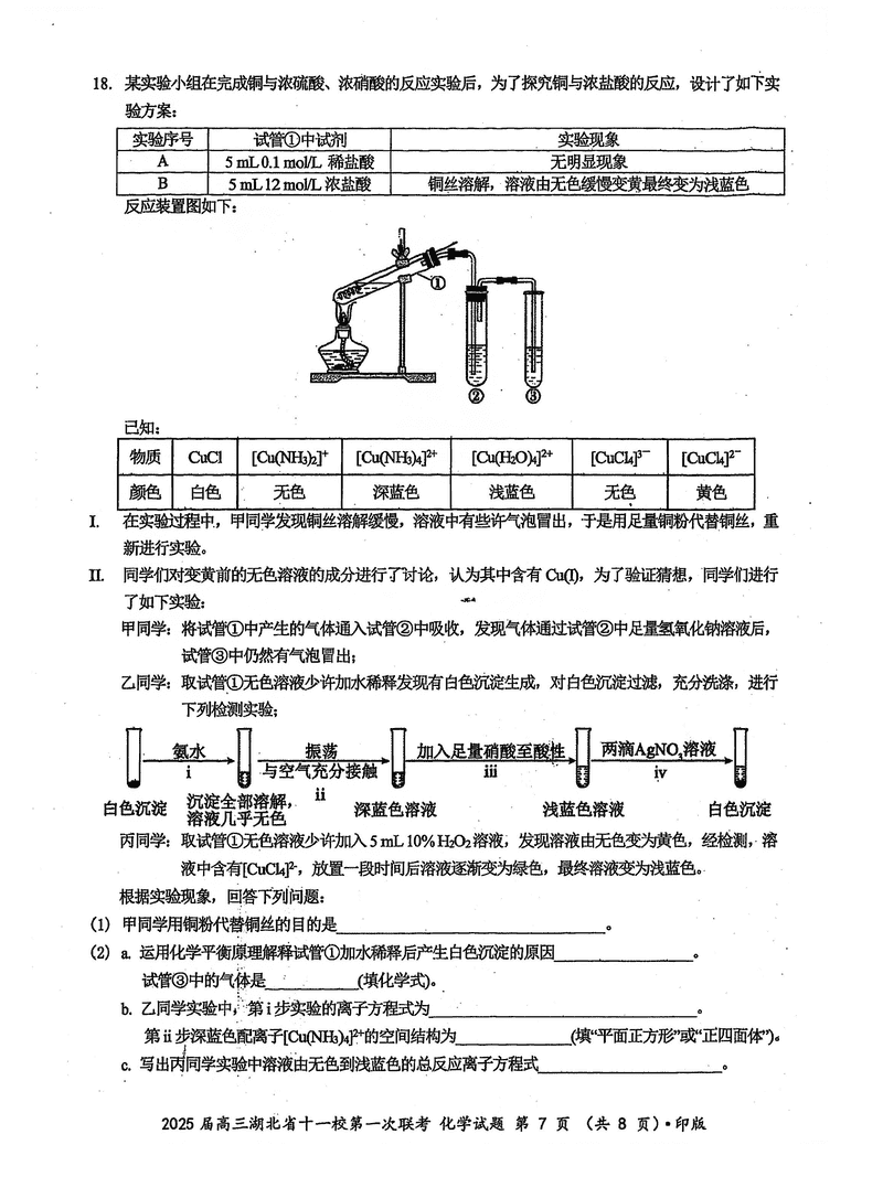 湖北十一校2025届高三12月第一次联考化学试题及答案