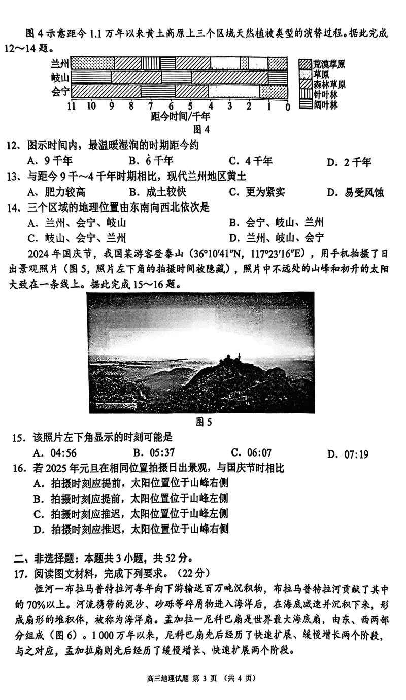 四川蓉城名校联盟2025届高三上学期第一次联考地理试题及答案